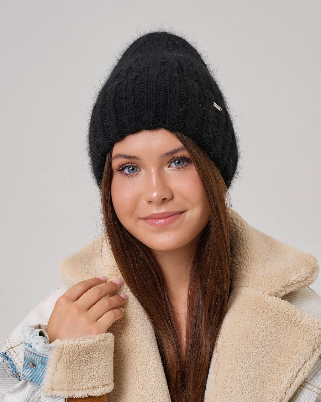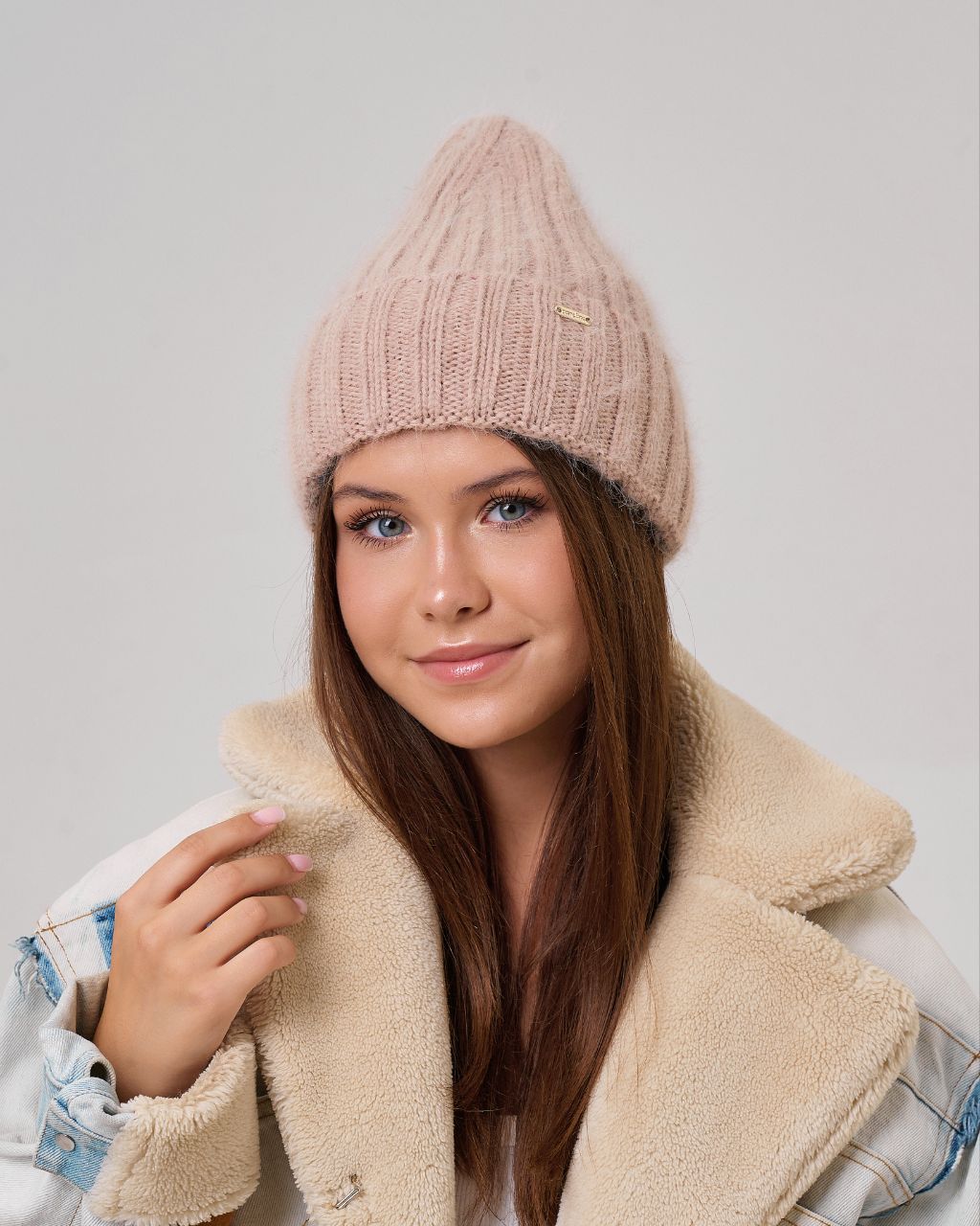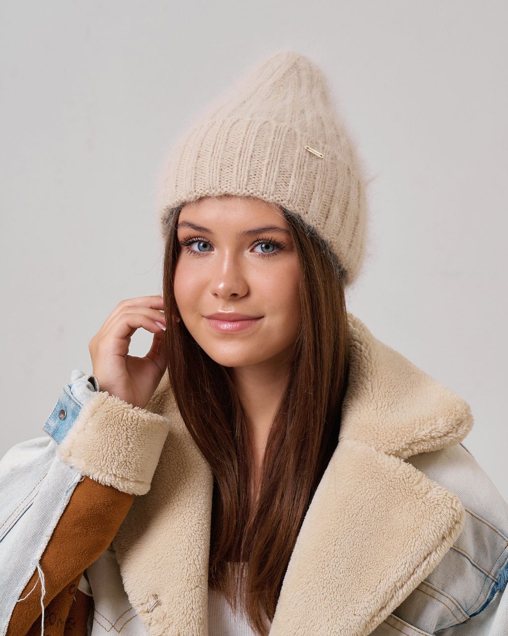 Жіноча шапка з ангори та нейлону. Надзвичайно м’яка й тепла, легка та комфортна у носінні. Завдяки еластичній структурі добре тримає форму та додає елегантності як повсякденним, так і класичним образам.