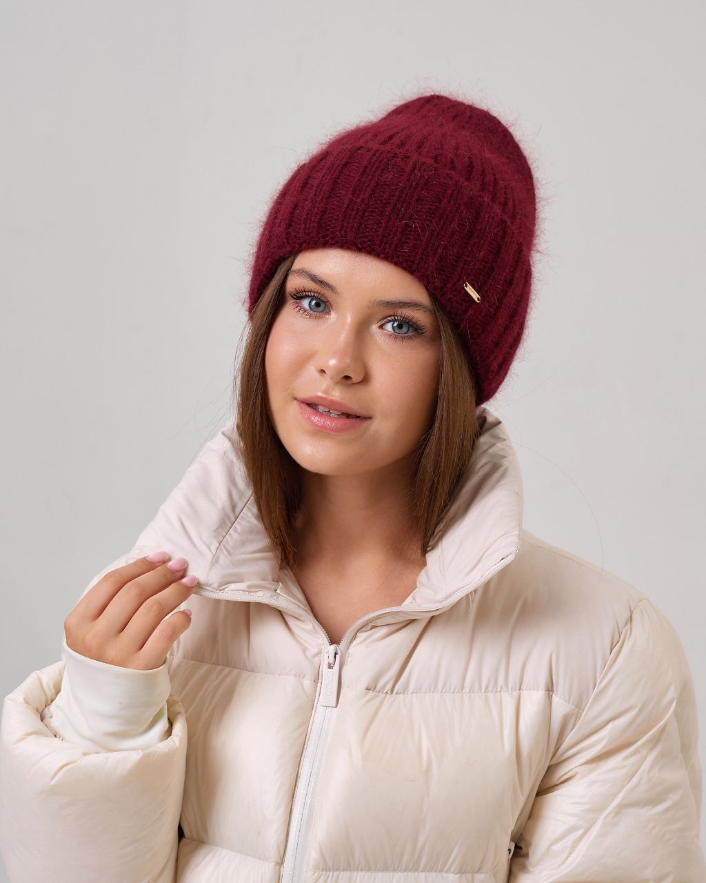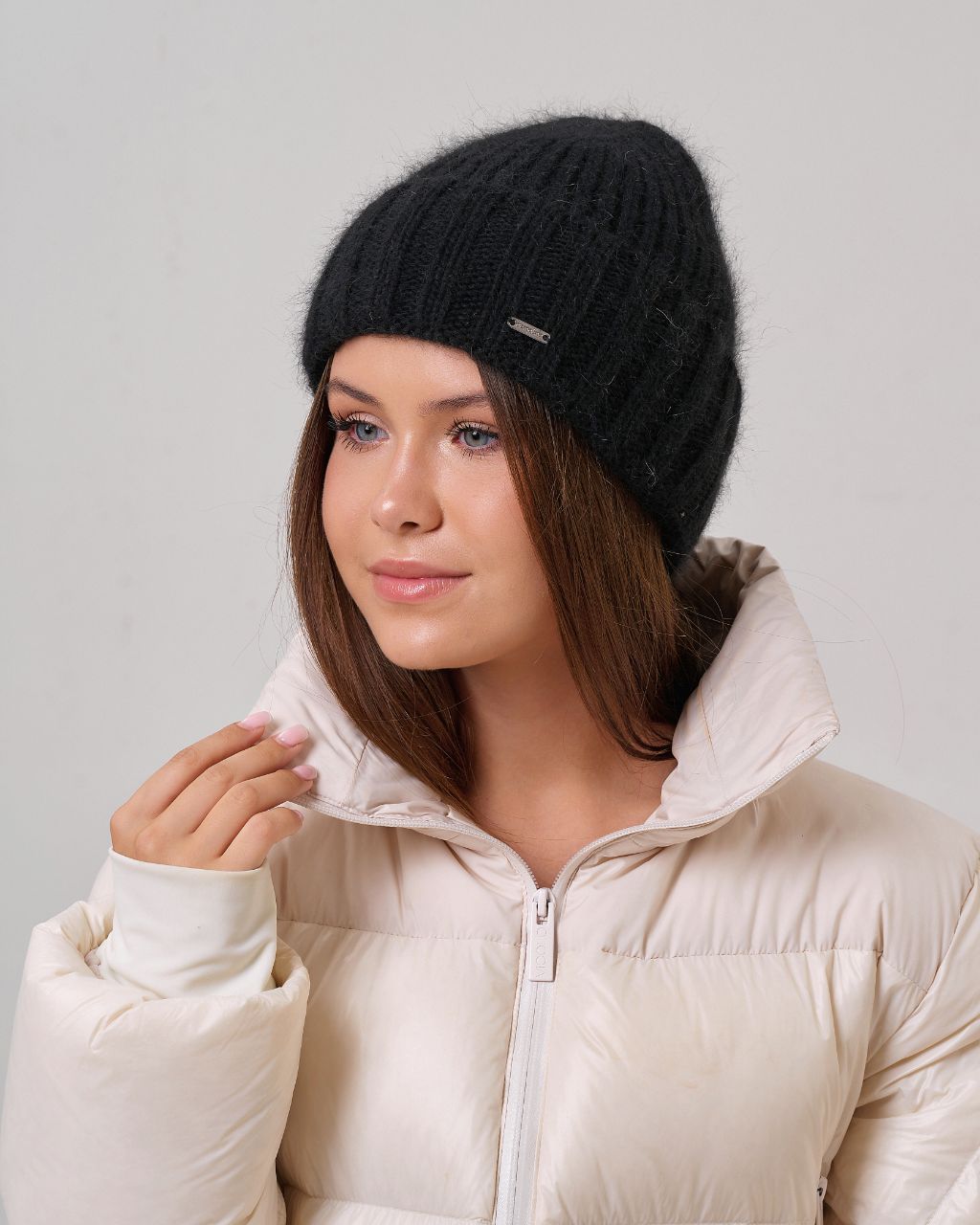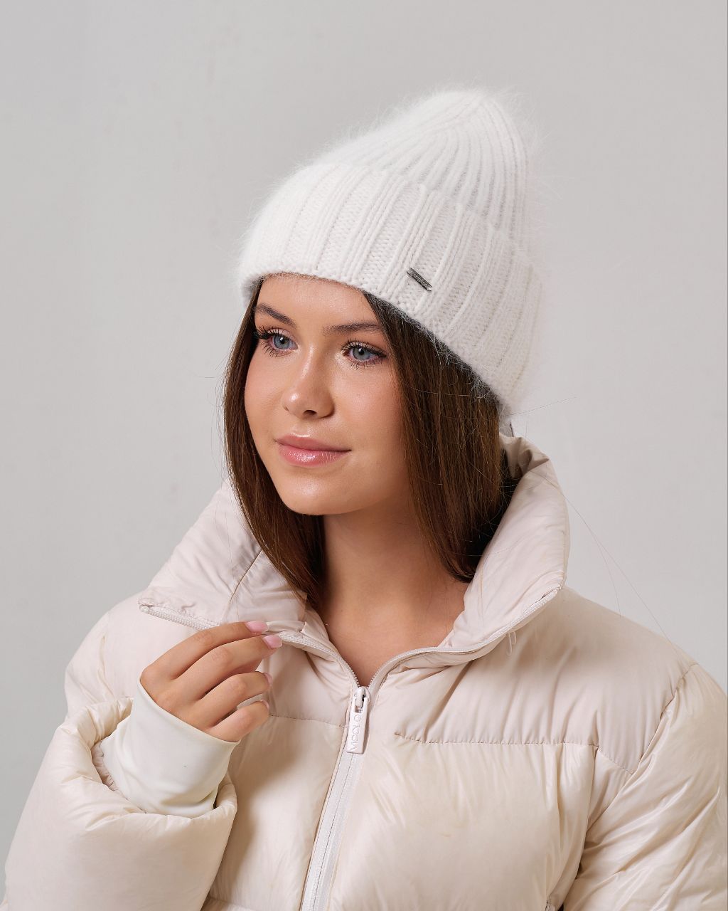 Жіноча шапка з ангори та нейлону. Дуже м’яка й тепла, легка за вагою та комфортна у щоденному носінні. Еластична структура забезпечує гарну посадку й робить цю модель універсальним аксесуаром як для повсякденних луків, так і для класичних образів.