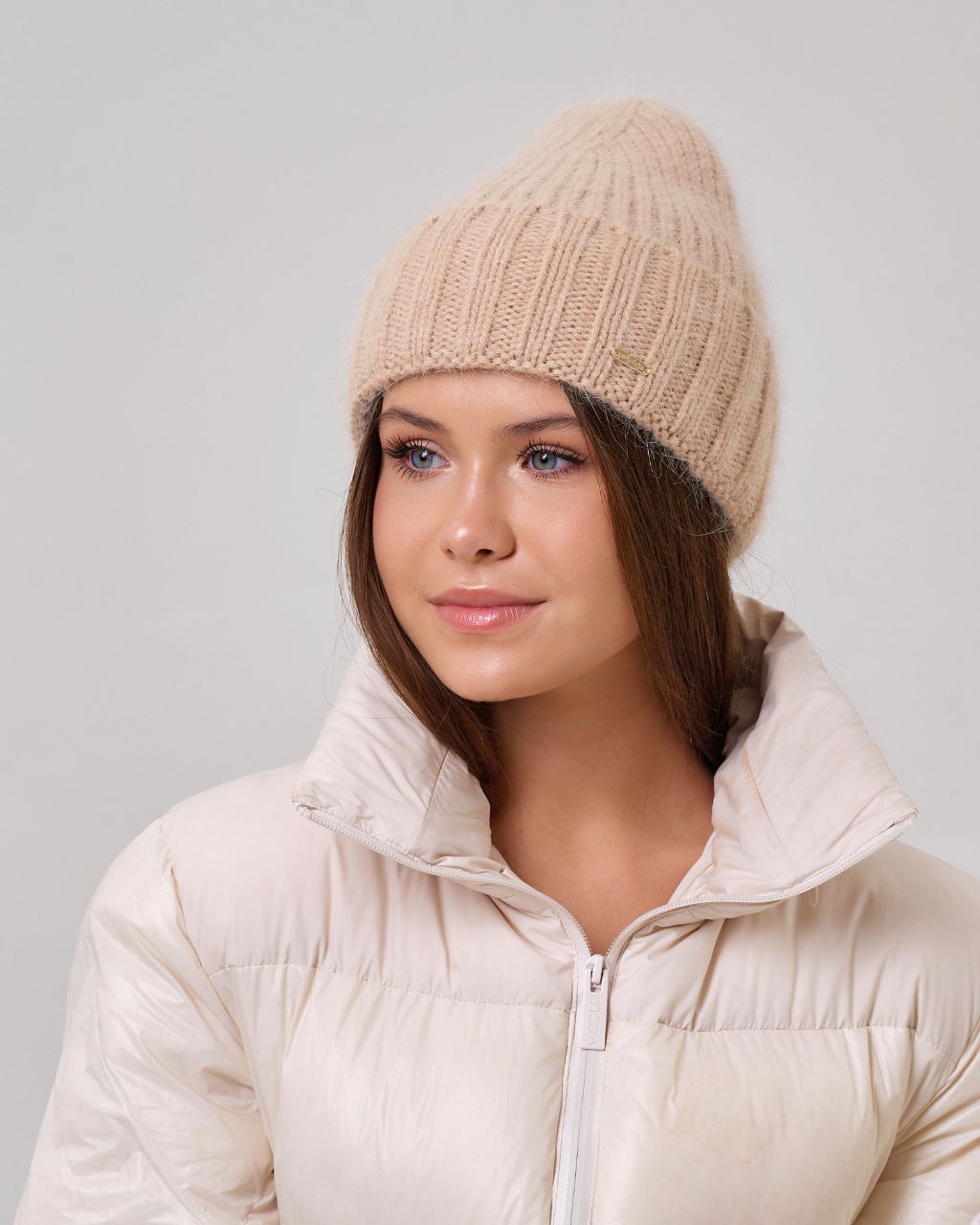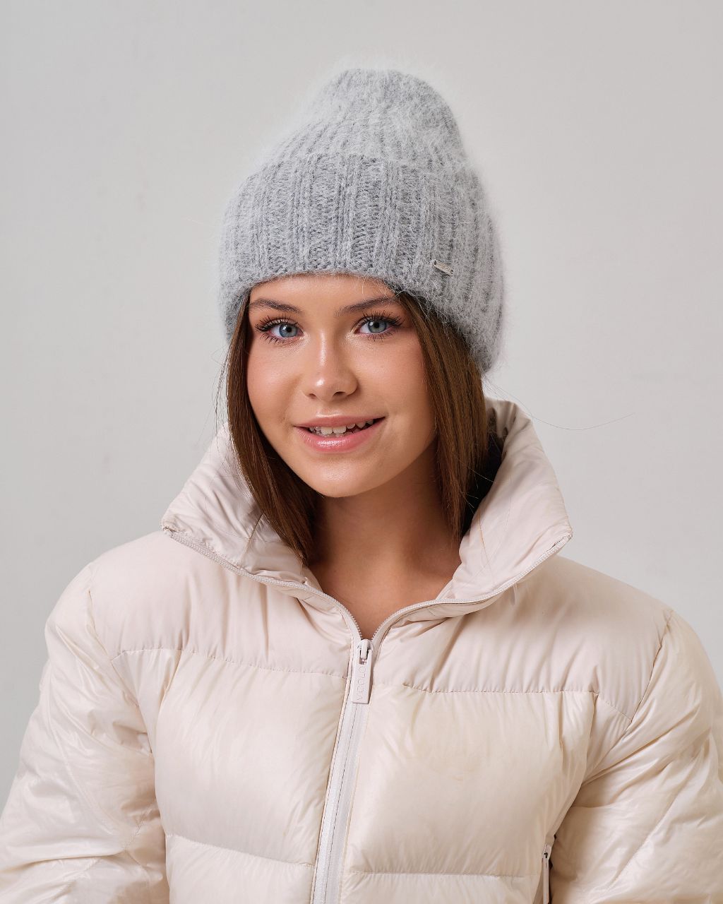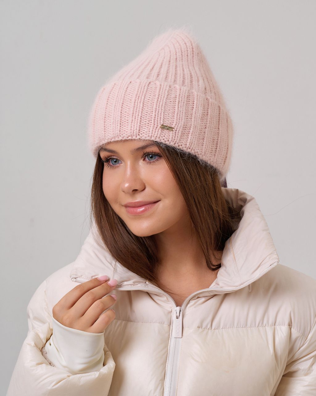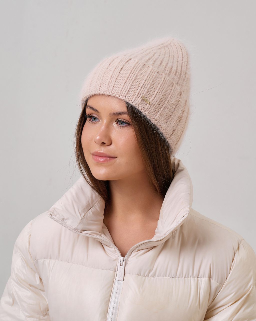 Жіноча шапка з ангори та нейлону. Дуже м’яка й тепла, легка за вагою та комфортна у щоденному носінні. Еластична структура забезпечує гарну посадку й робить цю модель універсальним аксесуаром як для повсякденних луків, так і для класичних образів.
