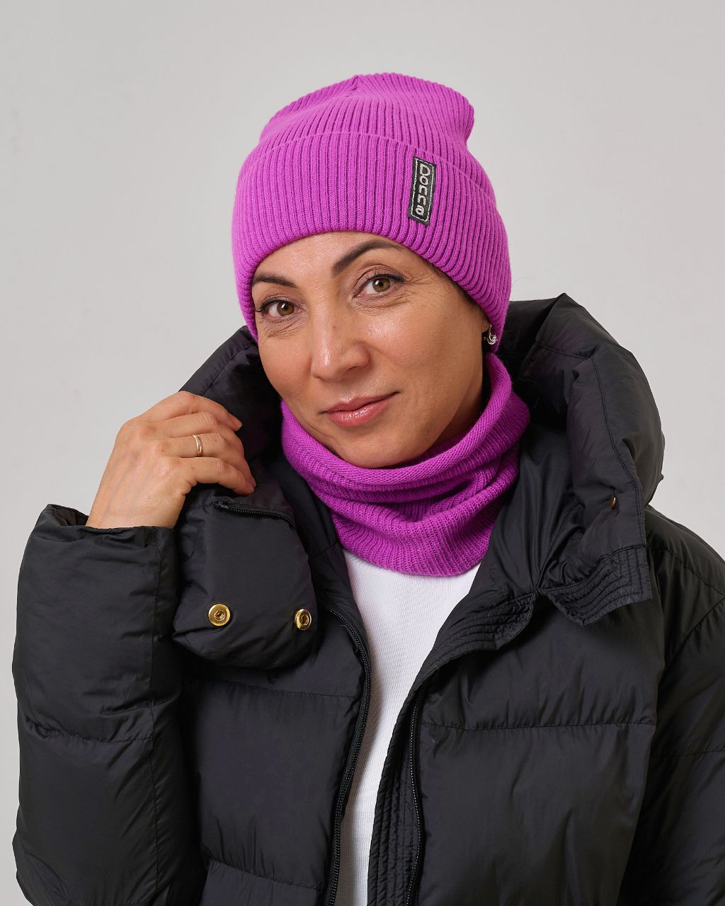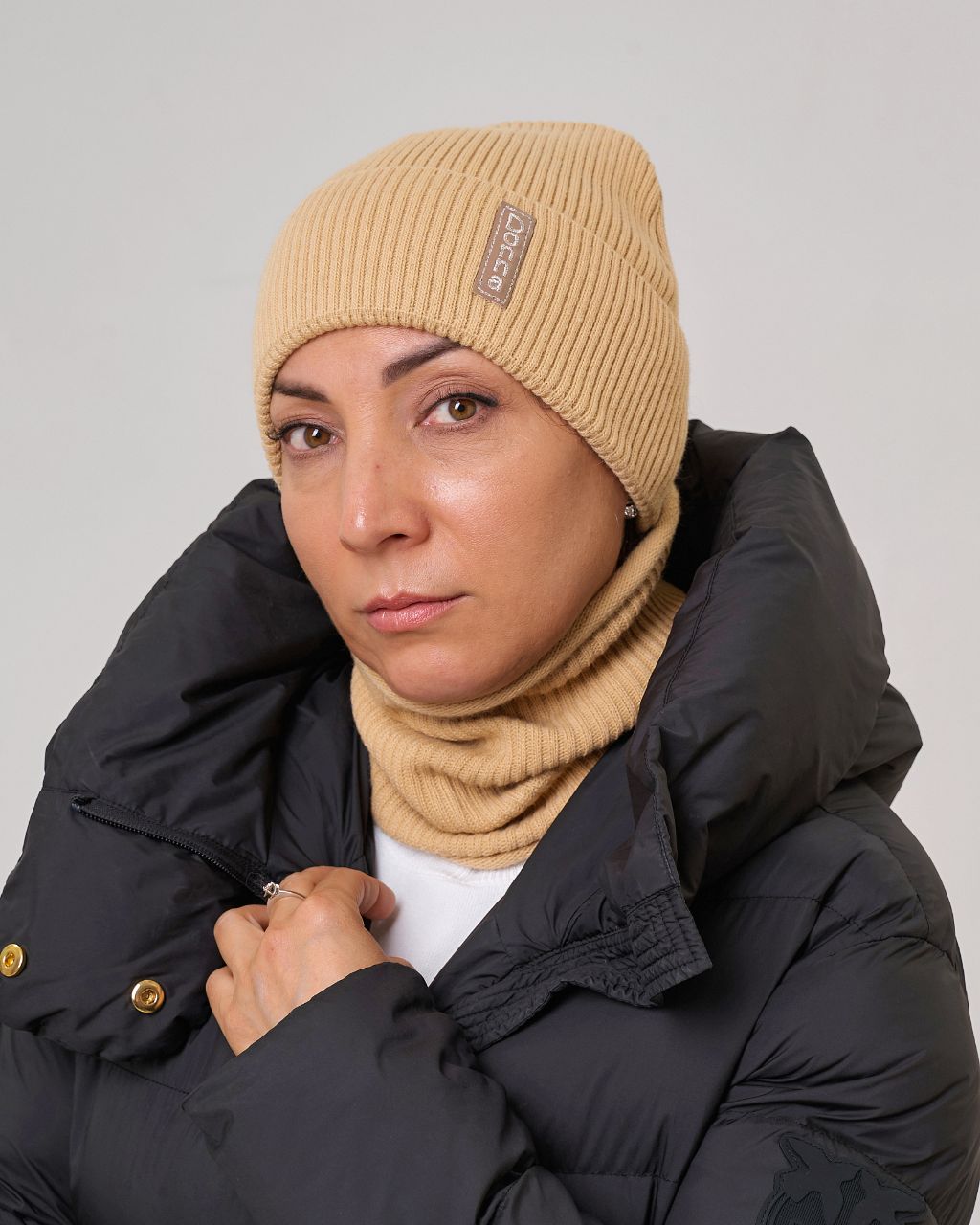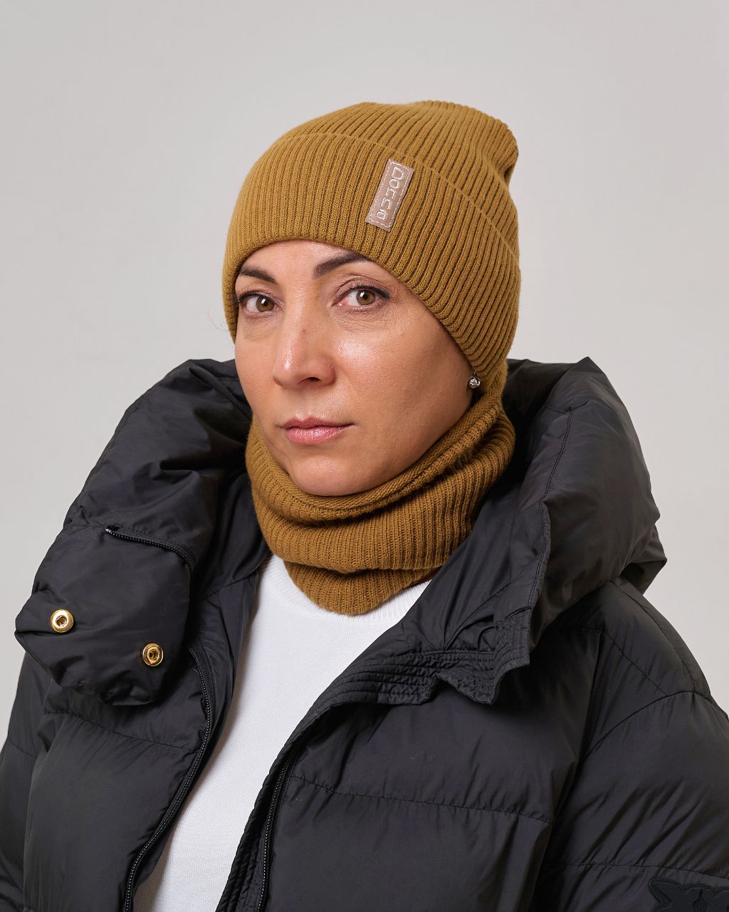 Жіночий комплект із вовною та мериносом (шапка та шарф у тон). М’який і теплий, приємний на дотик та зручний у носінні. Завдяки класичному дизайну цей сет легко поєднується як із повсякденним одягом, так і з більш елегантними образами.