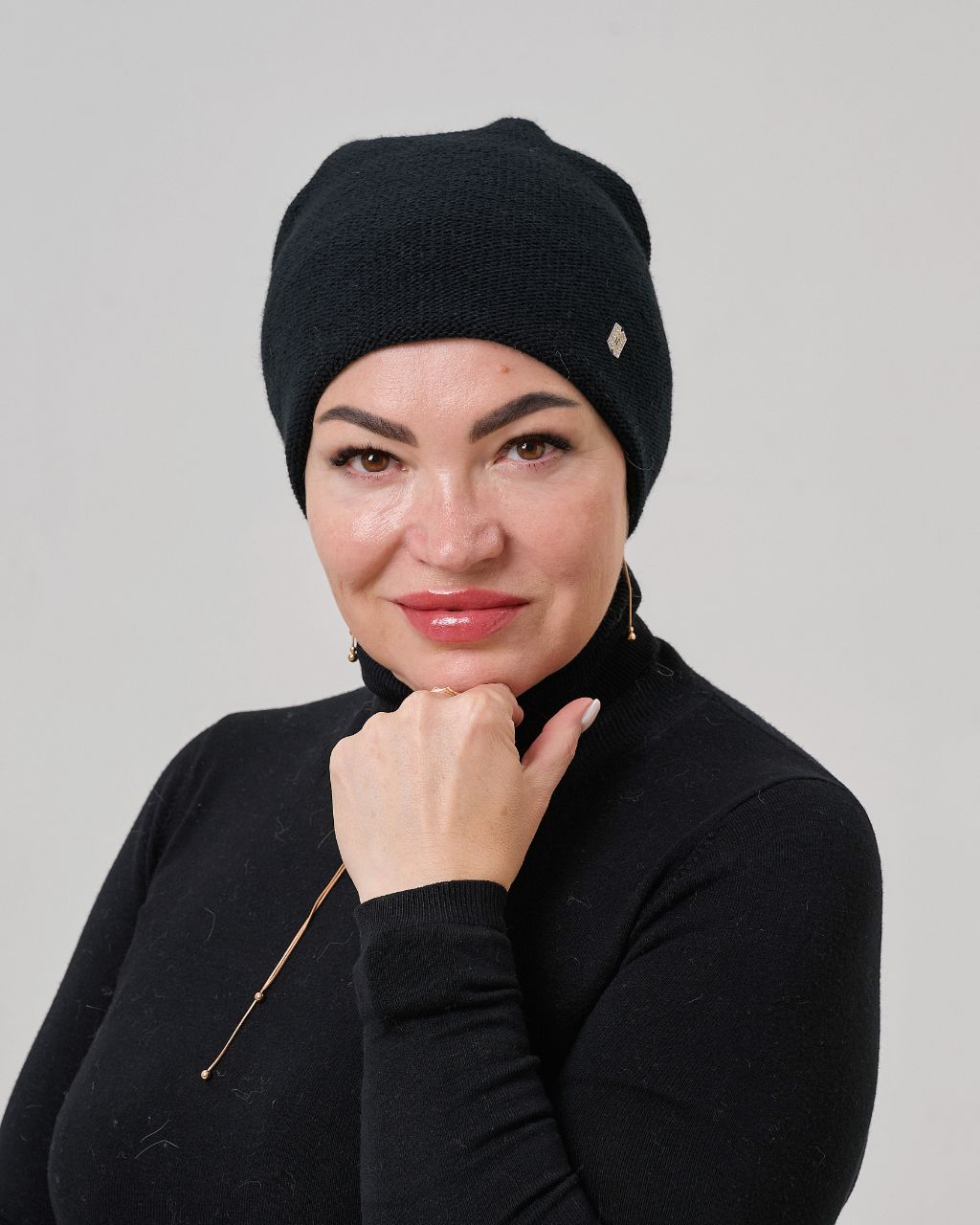 Жіноча шапка з вовною та мериносом. Тепла й м’яка, добре тримає форму та захищає від прохолоди. Універсальний дизайн легко поєднується з будь-яким верхнім одягом — від пуховика до класичного пальта.