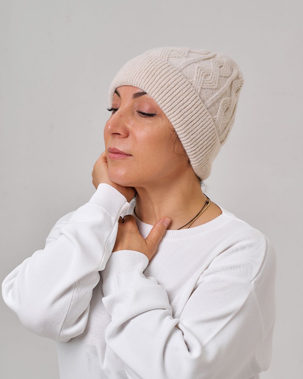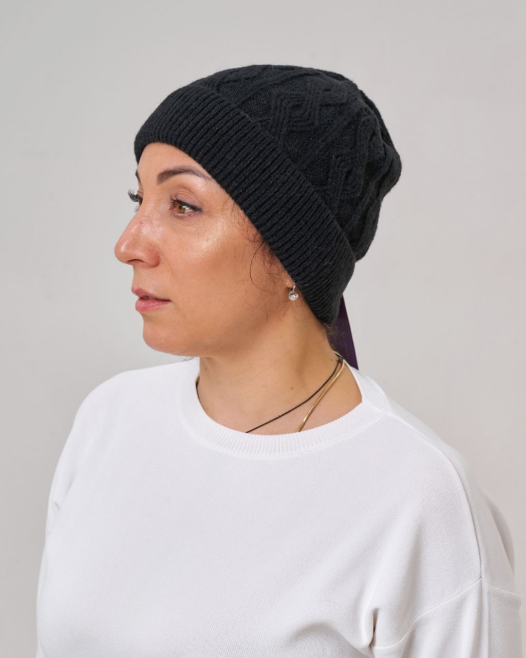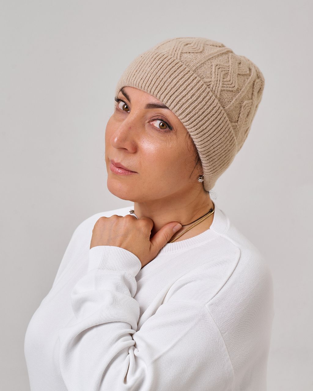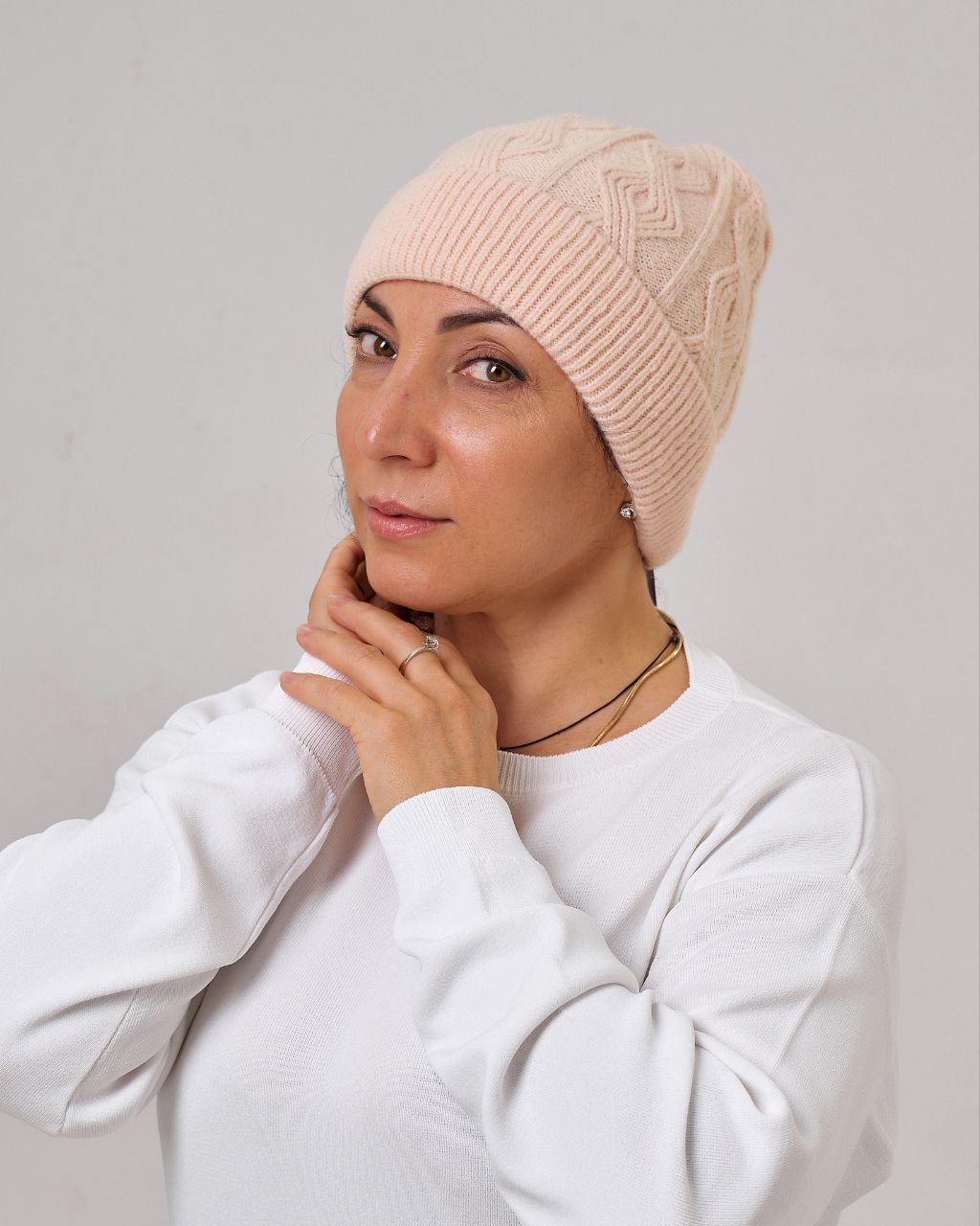 Жіноча шапка з мериносовою вовною. Тепла, м’яка й приємна на дотик, добре тримає форму та захищає від прохолоди. Завдяки універсальному дизайну гармонійно пасує як до повсякденних луків, так і до класичних образів.