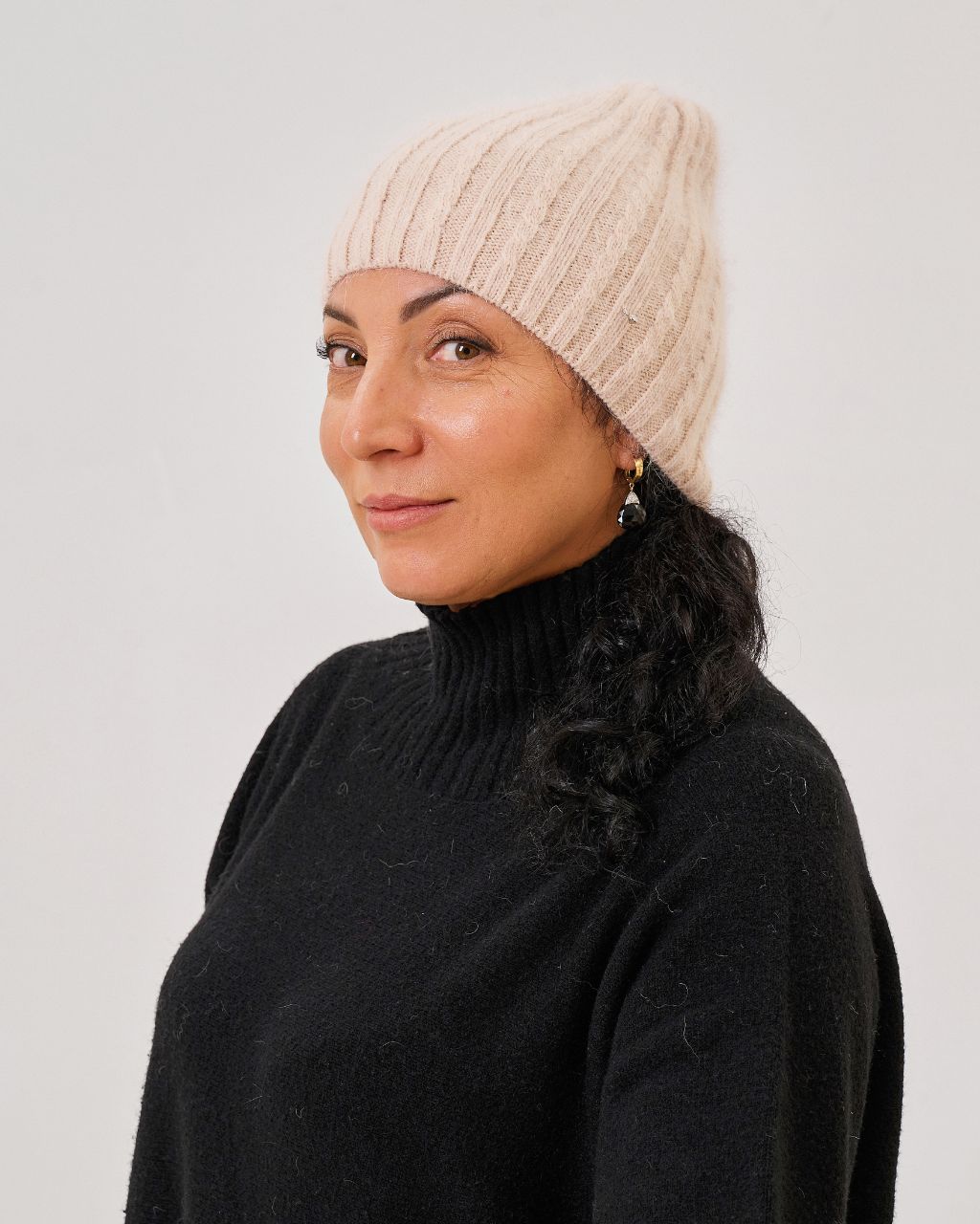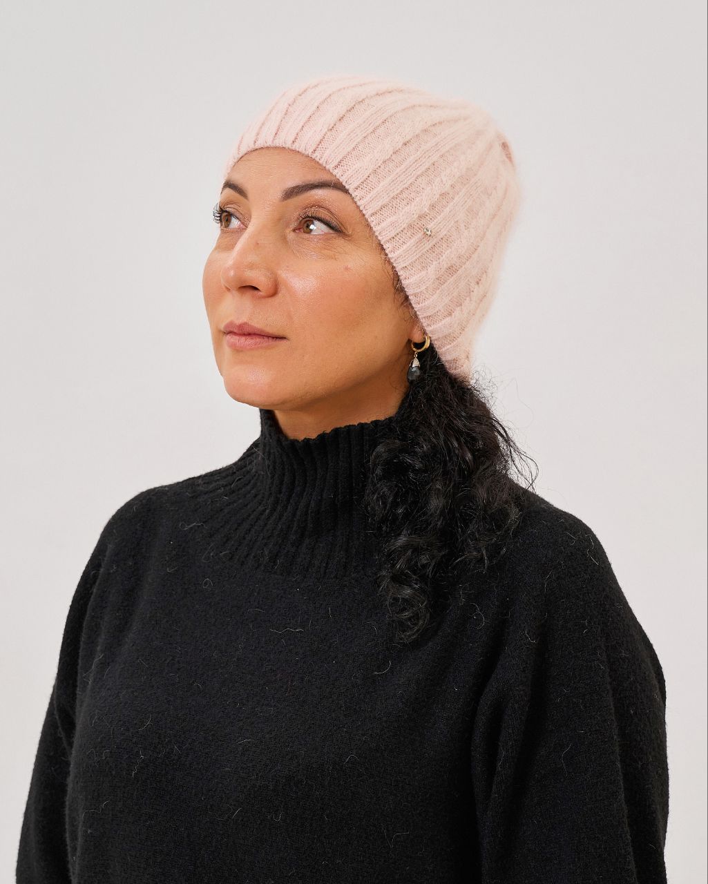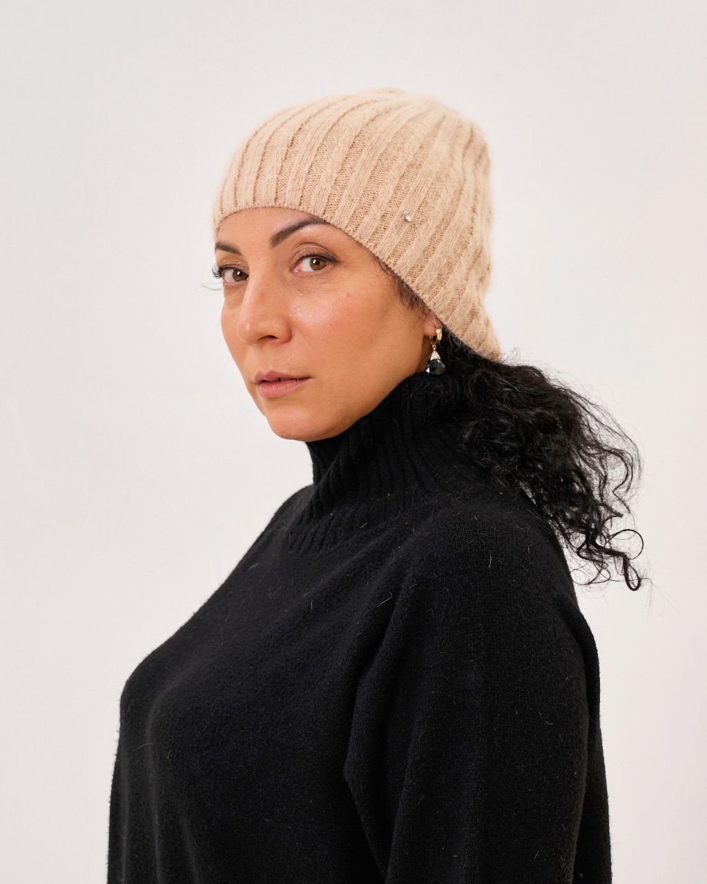 Жіноча шапка з ангори та нейлону. Дуже м’яка й тепла, легка за вагою та комфортна у носінні. Завдяки еластичній структурі добре тримає форму та гармонійно поєднується як із повсякденними луками, так і з класичним верхнім одягом.