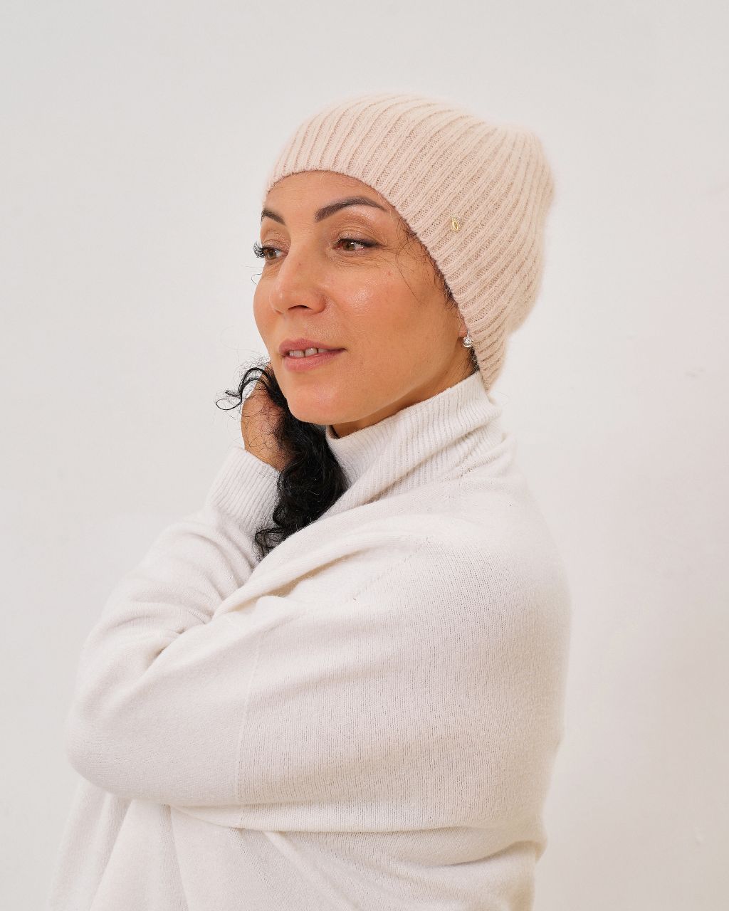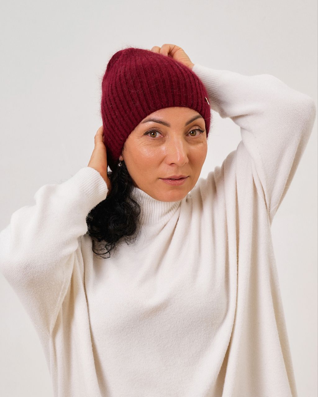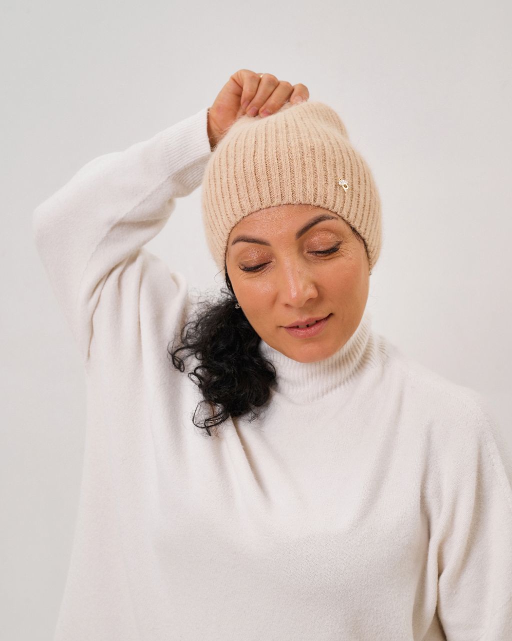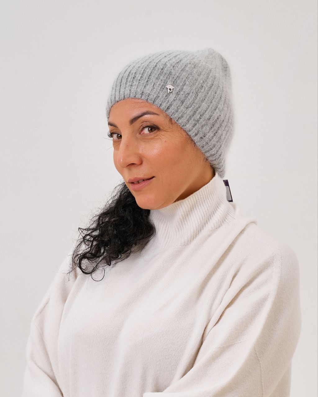 Жіноча шапка з ангори та нейлону. Дуже м’яка й тепла, легка за вагою та комфортна у носінні. Еластична структура забезпечує відмінну посадку та робить цю модель універсальним доповненням як до повсякденних, так і до класичних образів.