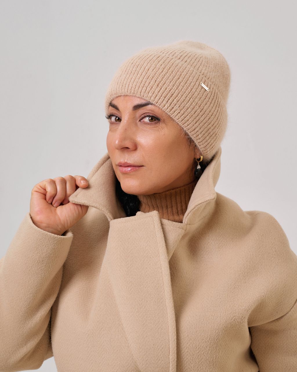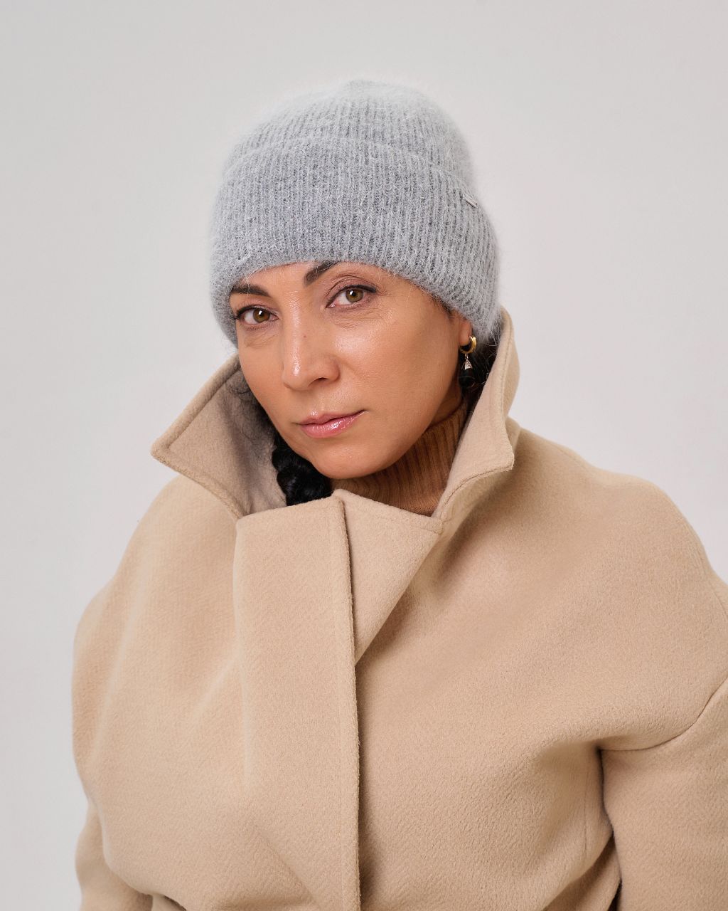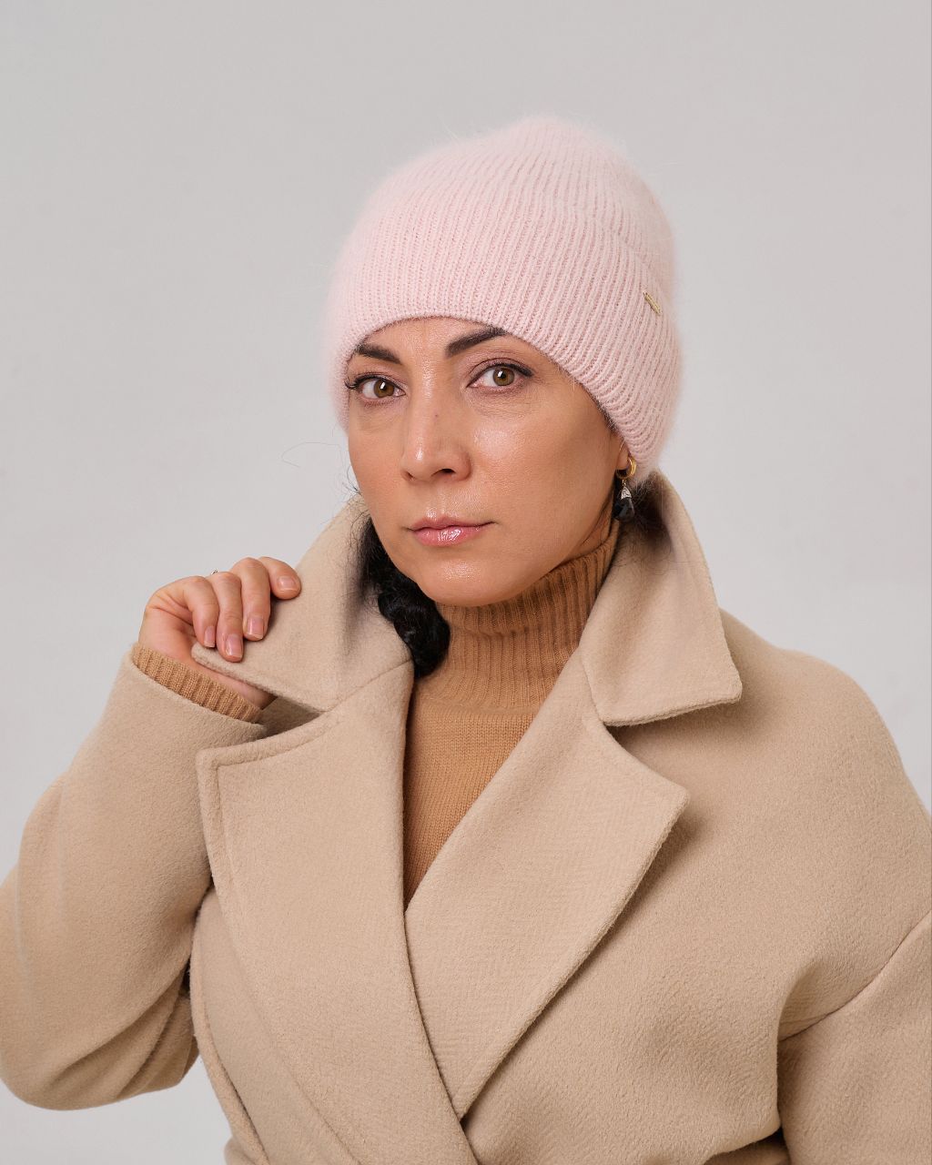 Жіноча шапка з ангори та нейлону. Дуже м’яка, тепла й легка, комфортна у щоденному носінні. Еластична структура забезпечує гарну посадку та робить цю модель універсальним доповненням як до повсякденних, так і до класичних образів.