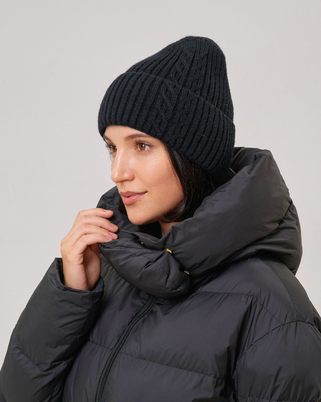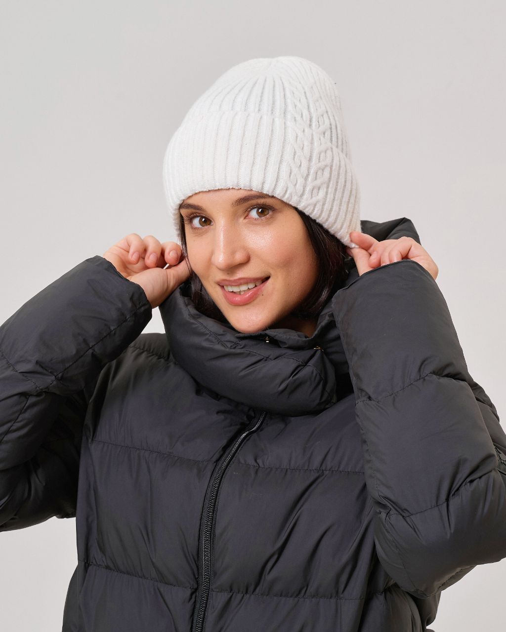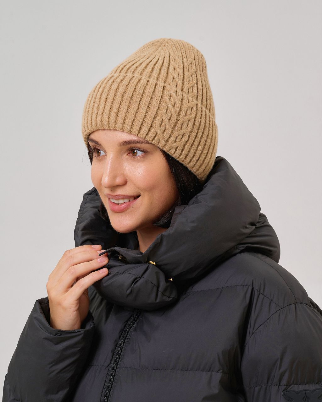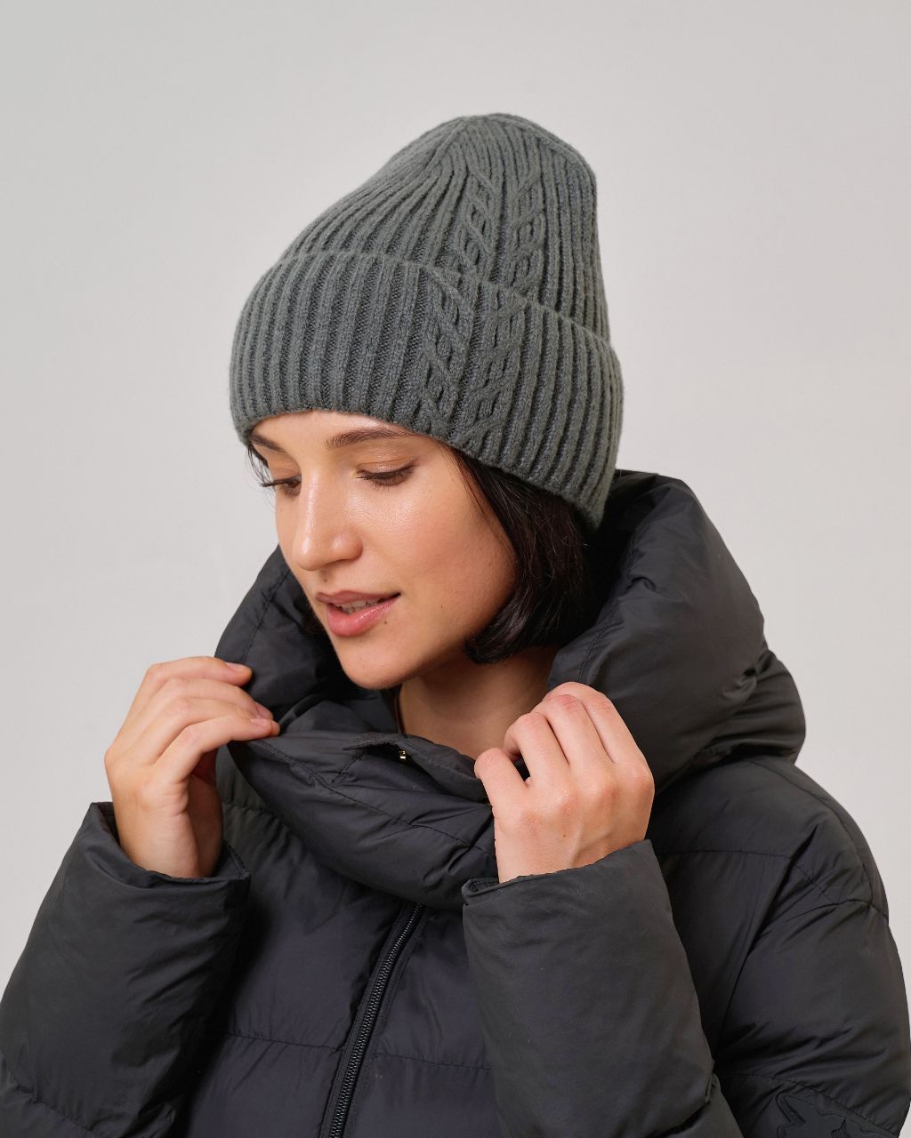 Жіноча шапка з мериносовою вовною. Тепла й м’яка, добре тримає форму та забезпечує комфорт у прохолодні дні. Універсальний мінімалістичний дизайн легко комбінується як із повсякденним, так і з класичним верхнім одягом.