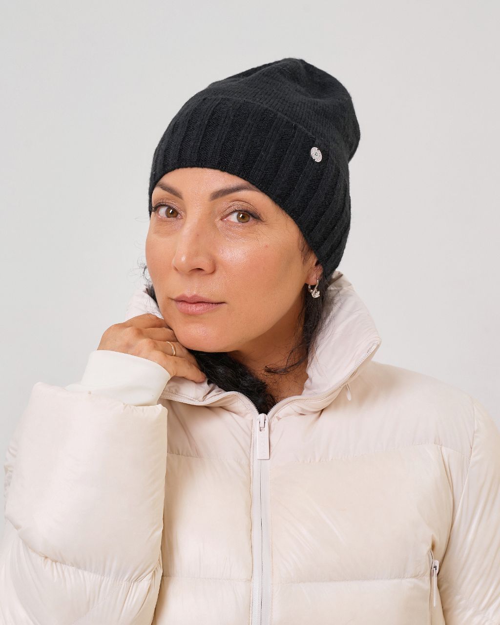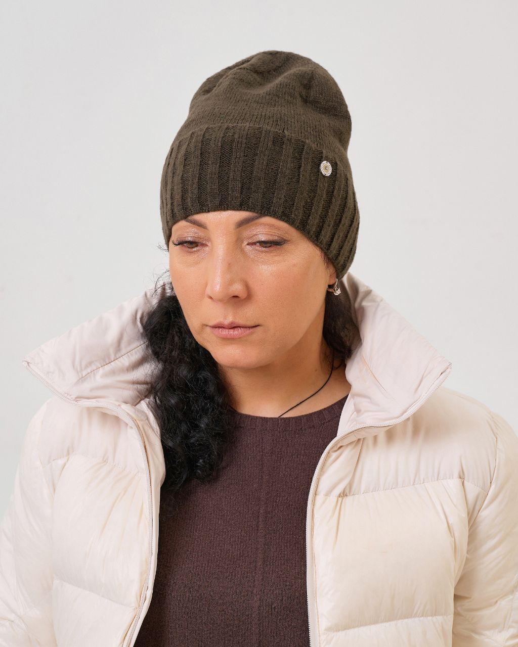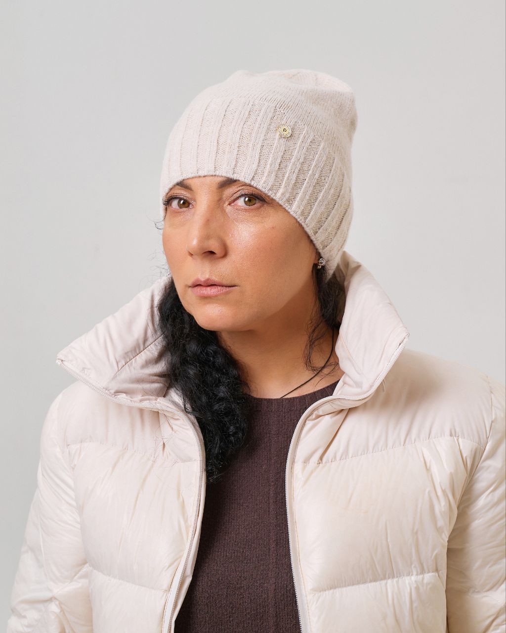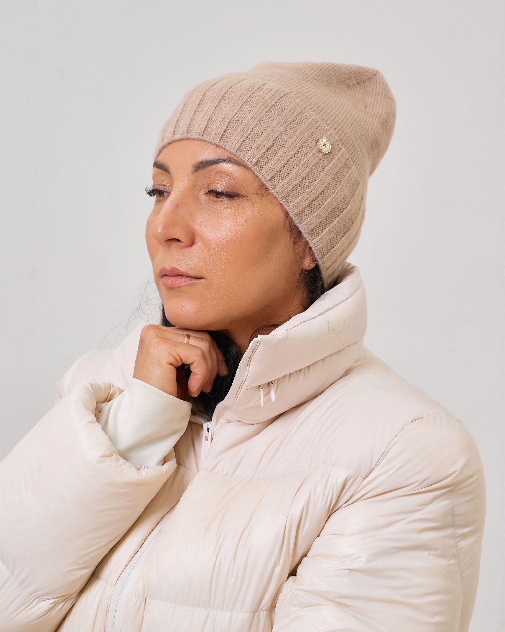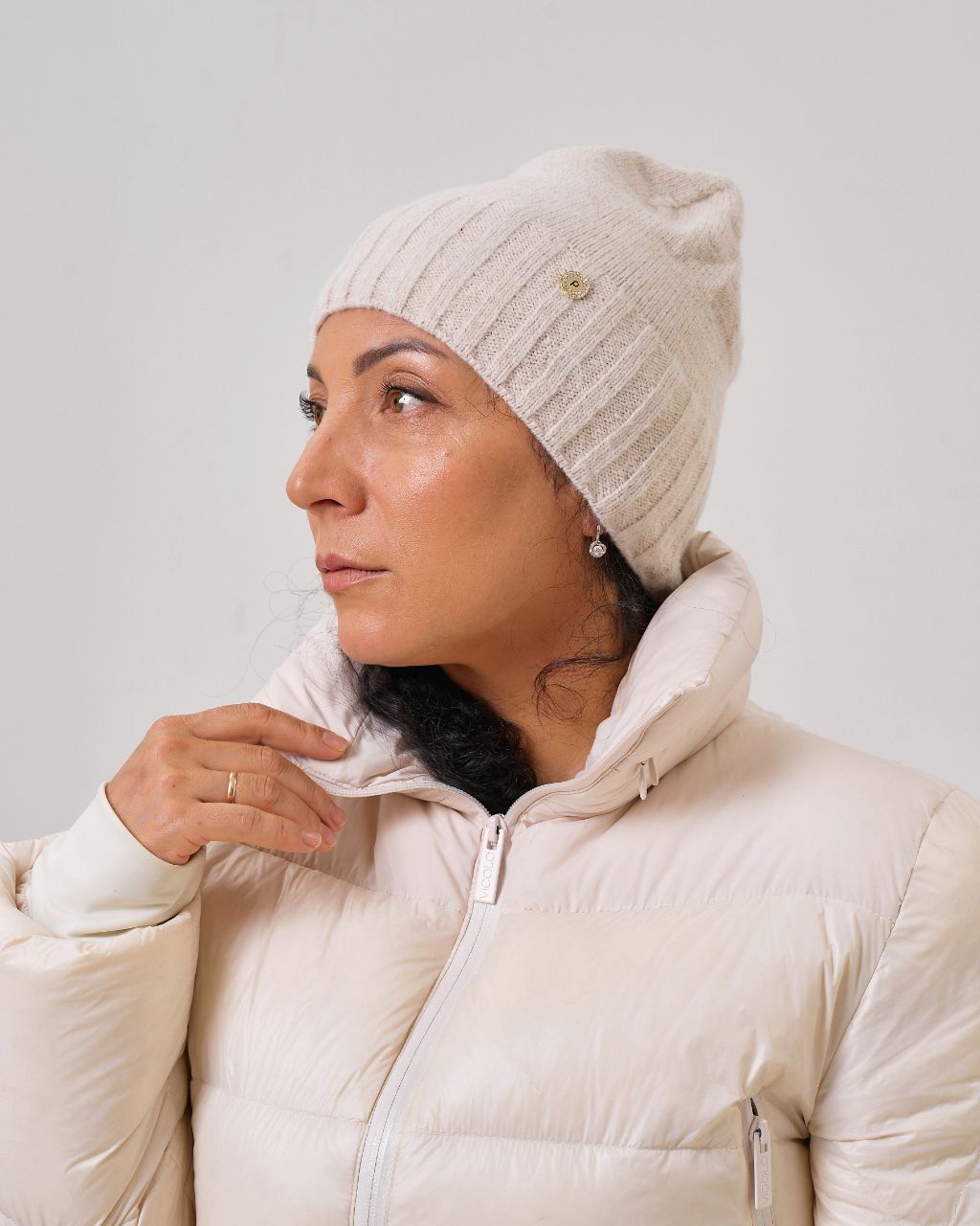 Жіноча шапка з мериносовою вовною. Легка, тепла та приємна на дотик, вона забезпечує комфорт у прохолодний сезон, добре тримає форму та захищає від вітру. Універсальний дизайн легко комбінується з будь-яким стилем верхнього одягу.