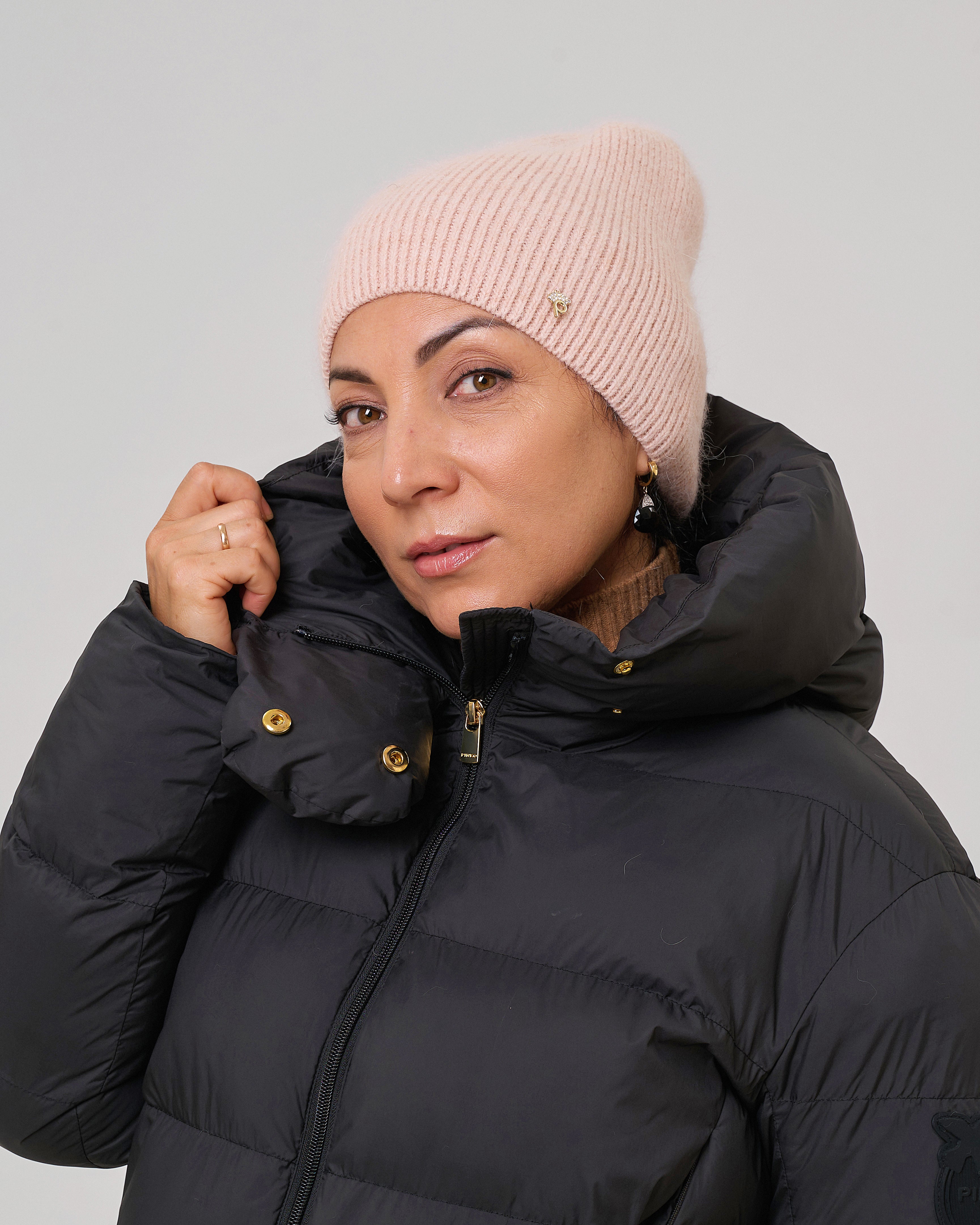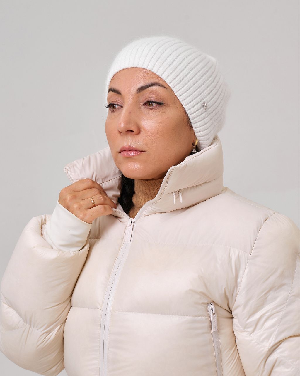 Жіноча шапка з ангори та нейлону. Дуже м’яка й тепла, легка та комфортна у щоденному носінні. Завдяки еластичній структурі добре тримає форму та елегантно доповнює як повсякденні, так і класичні образи.