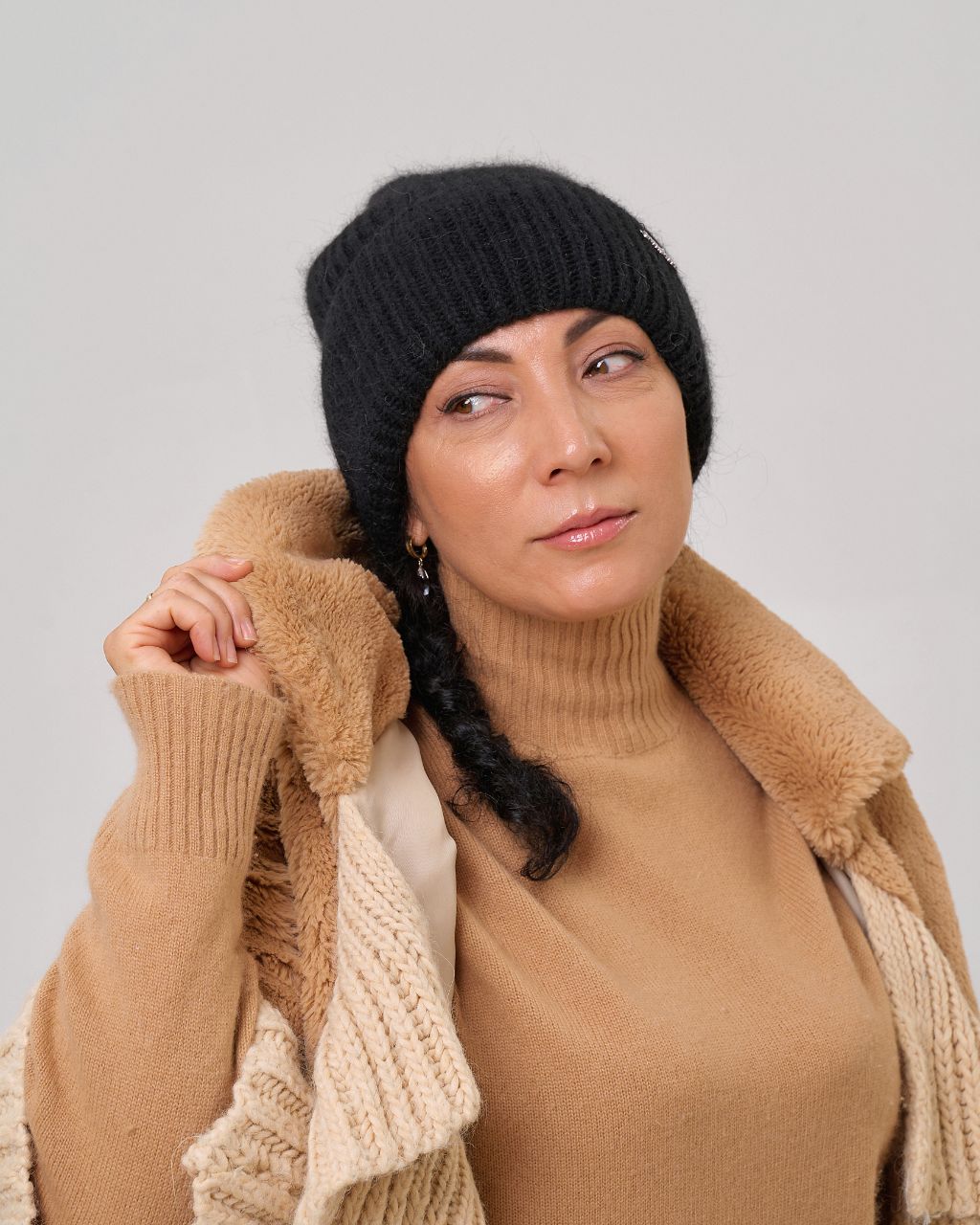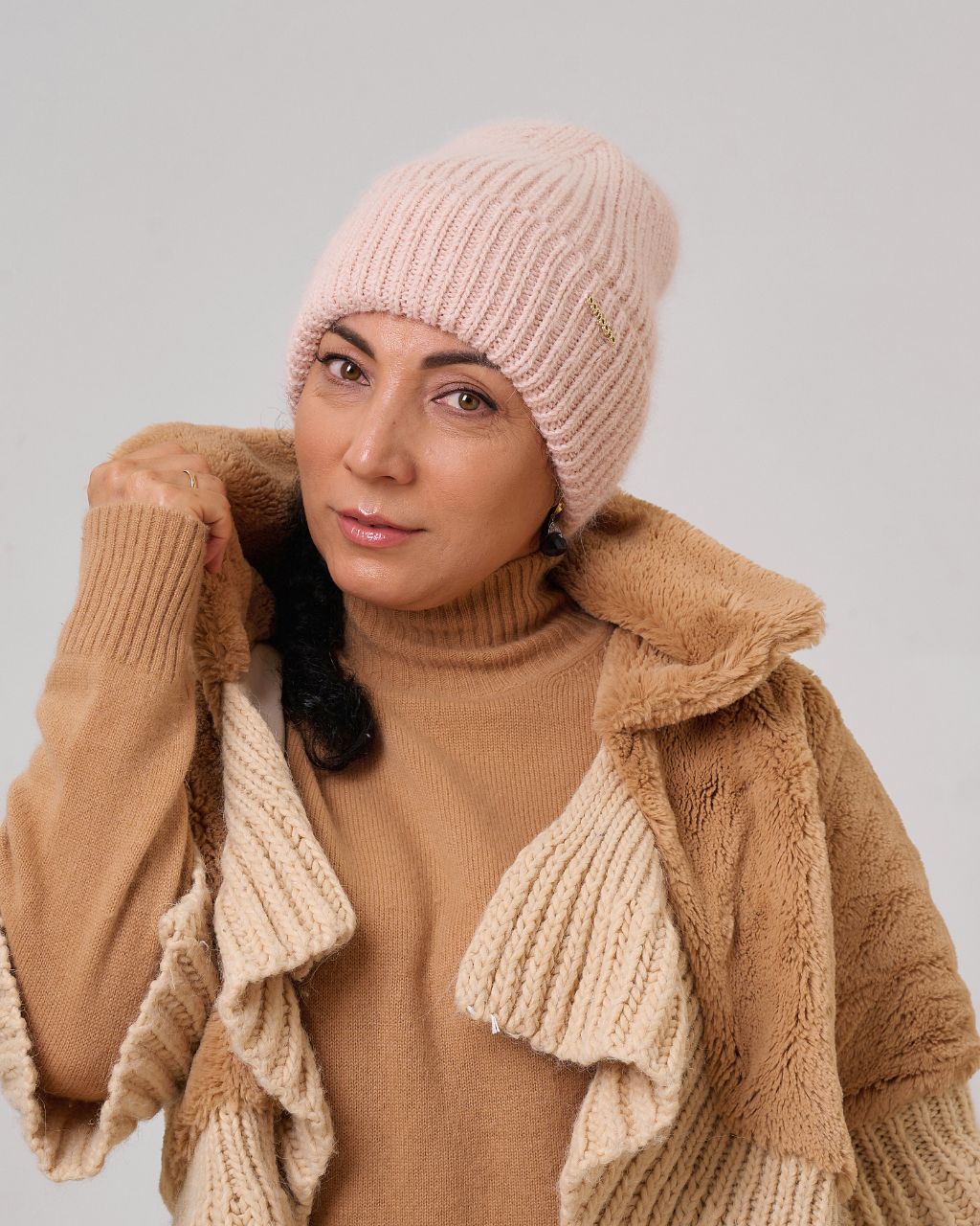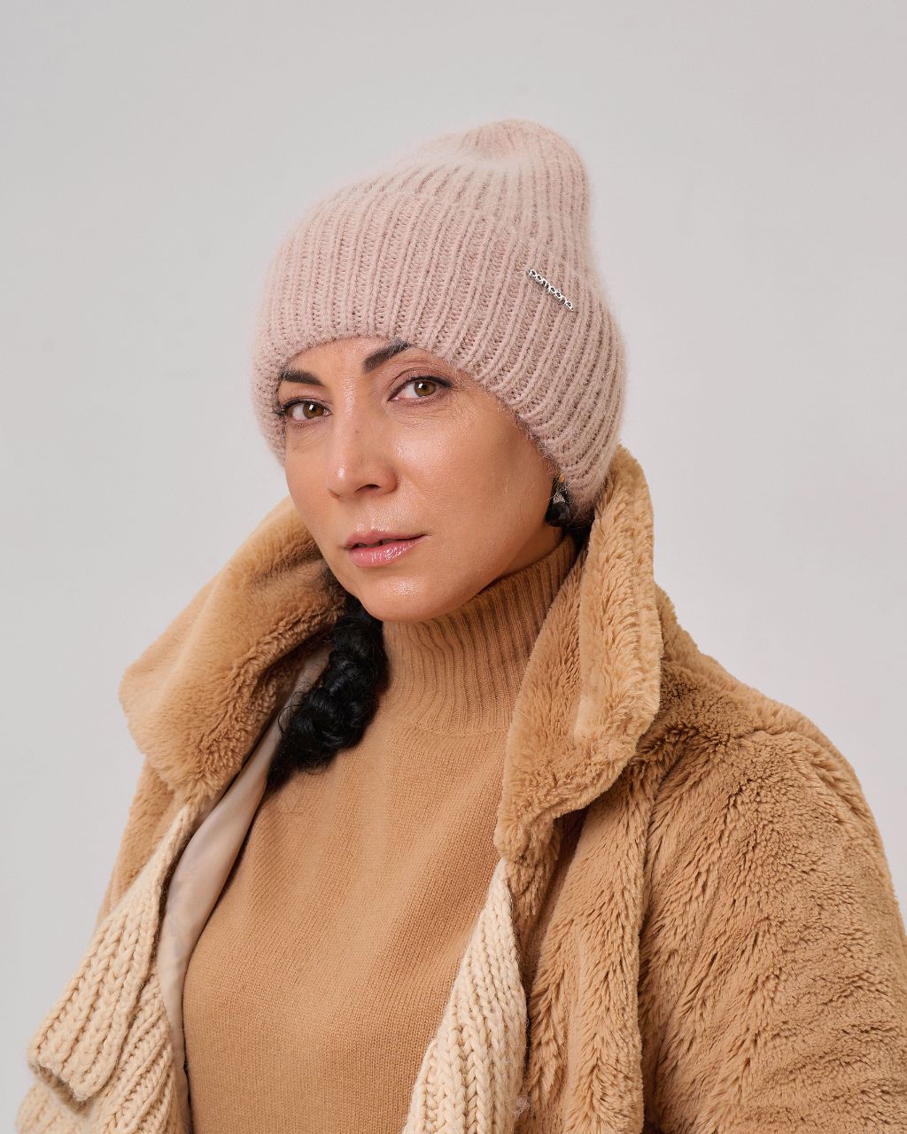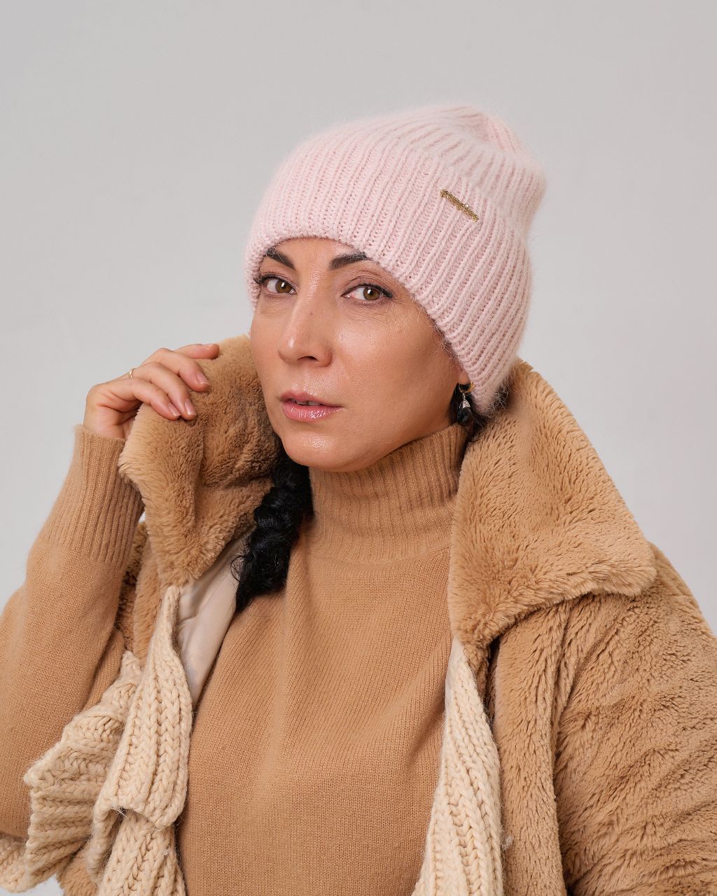 Жіноча шапка з ангори та нейлону. Дуже м’яка й тепла, легка та комфортна у щоденному носінні. Завдяки еластичній структурі добре тримає форму та гармонійно поєднується як із повсякденними луками, так і з класичними образами.