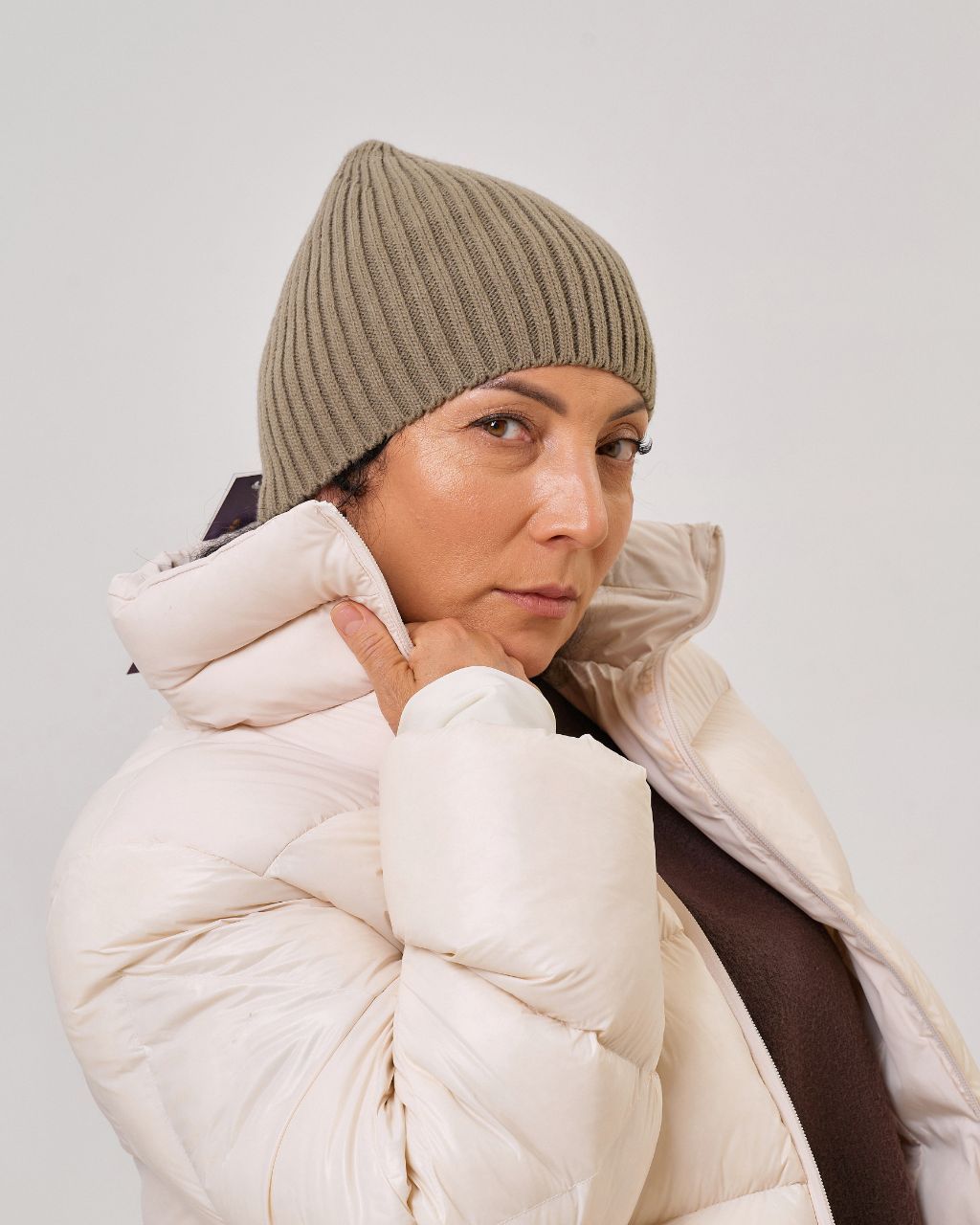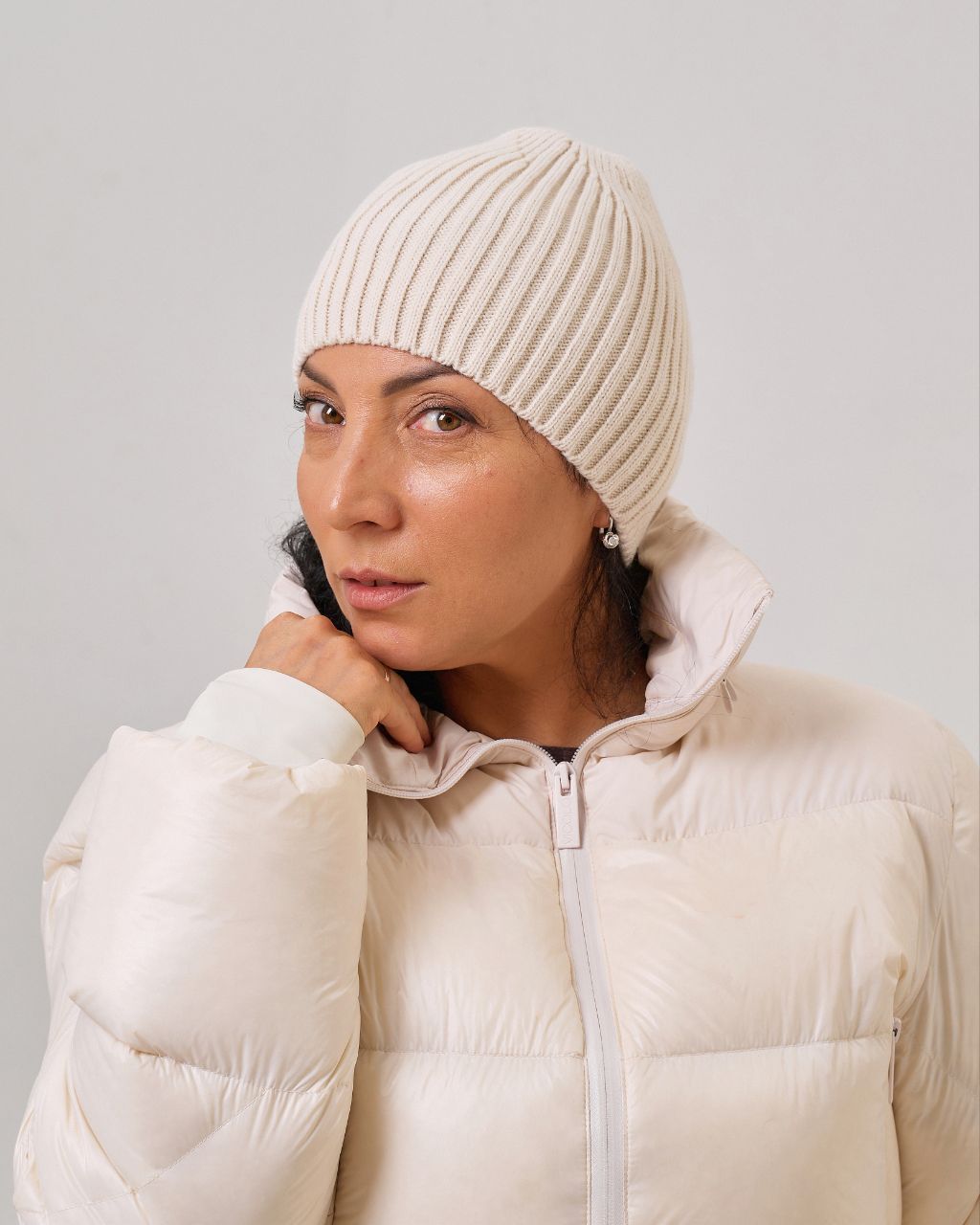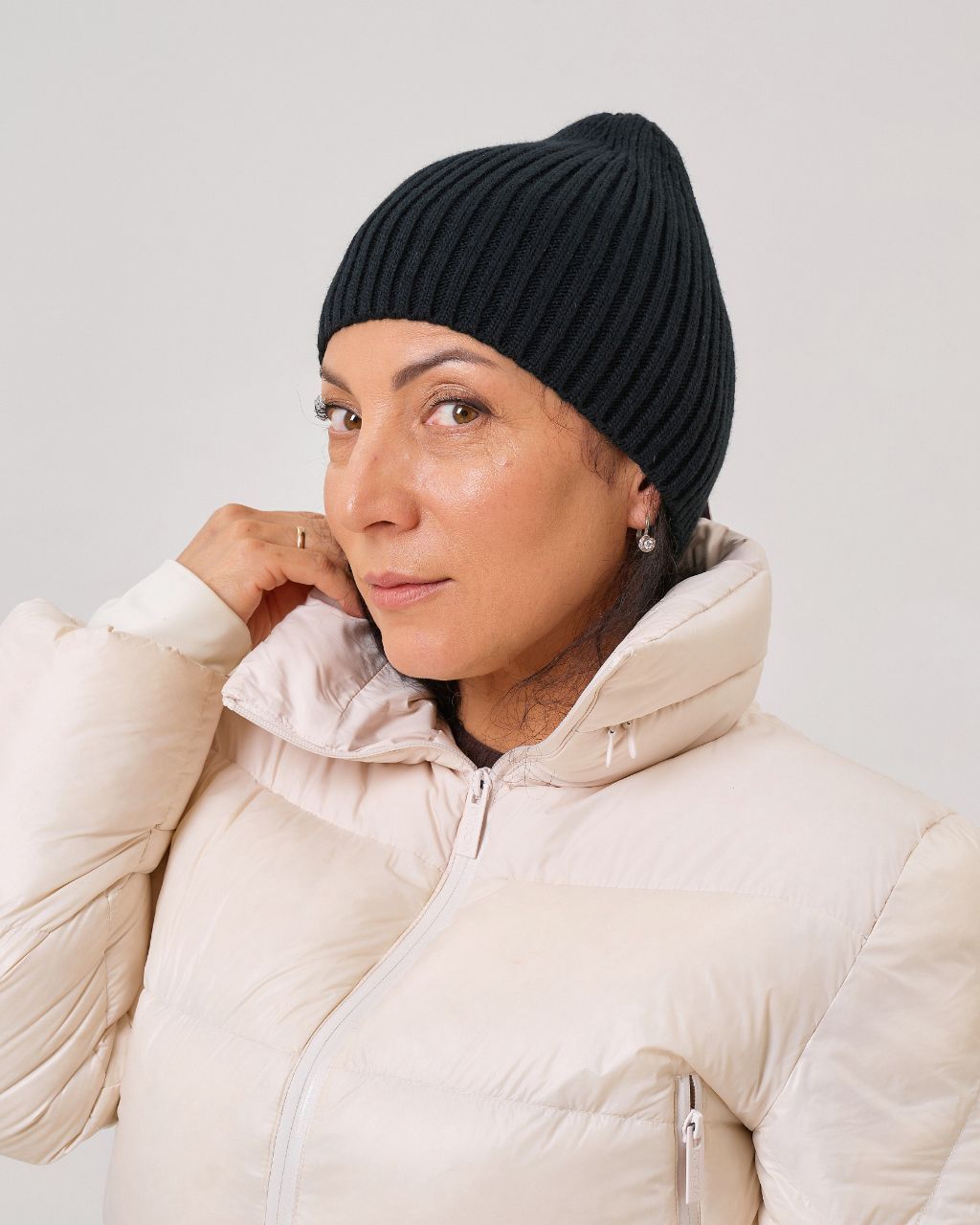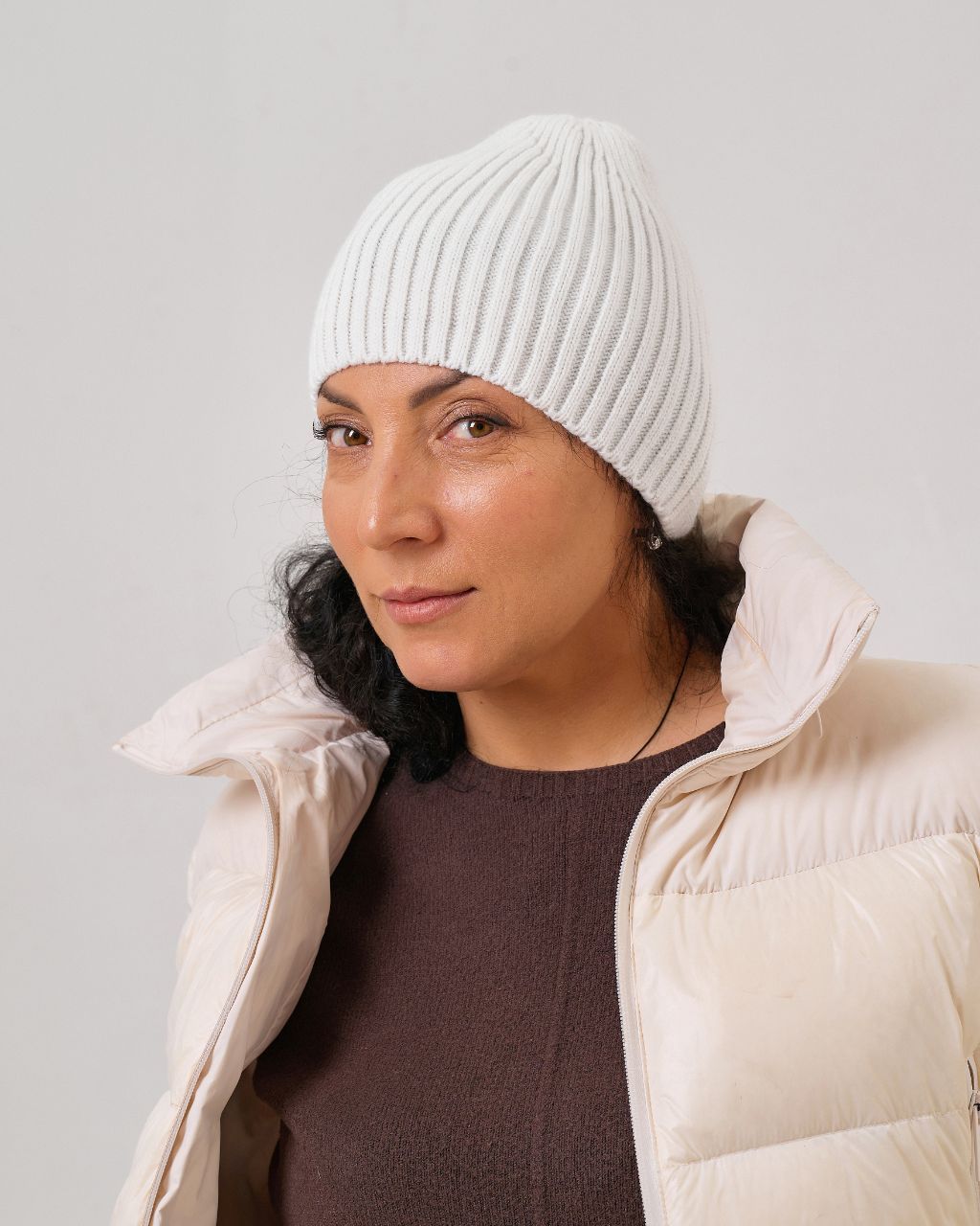 Жіноча шапка з вовною та мериносом. М’яка, тепла й комфортна, вона добре тримає форму та захищає від прохолоди. Лаконічний дизайн робить її універсальним доповненням до будь-якого стилю верхнього одягу.