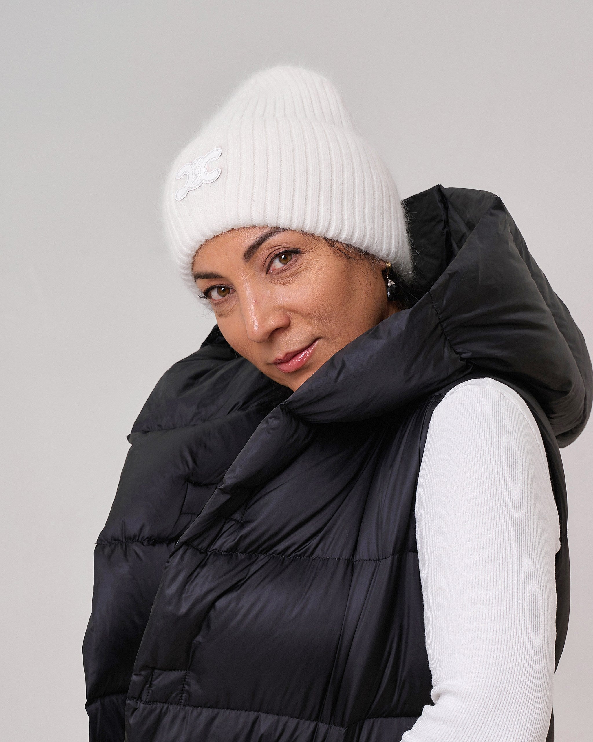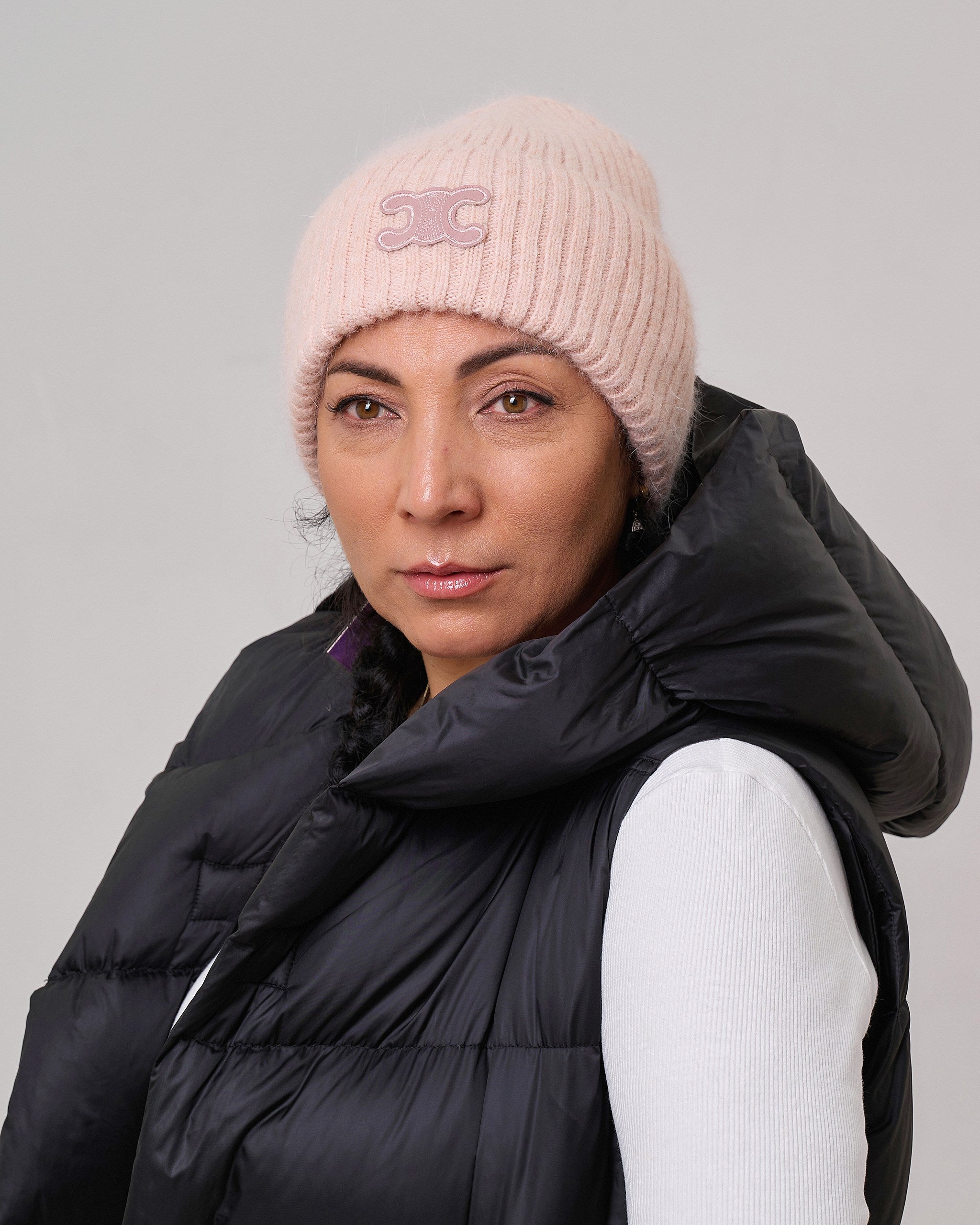 Жіноча шапка з ангори, вовни, поліаміду та акрилу. Легка, тепла й м’яка, вона забезпечує комфорт та приємні тактильні відчуття. Завдяки ніжній текстурі й лаконічному дизайну шапка стане стильним акцентом у вашому гардеробі та пасуватиме до будь-якого образу.