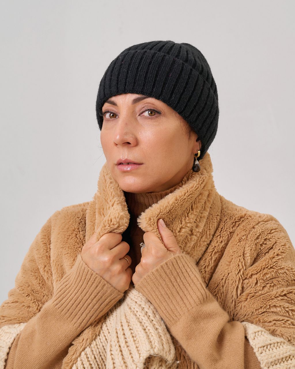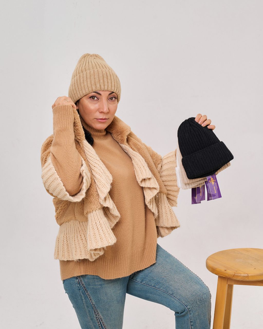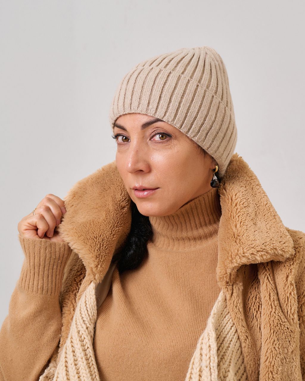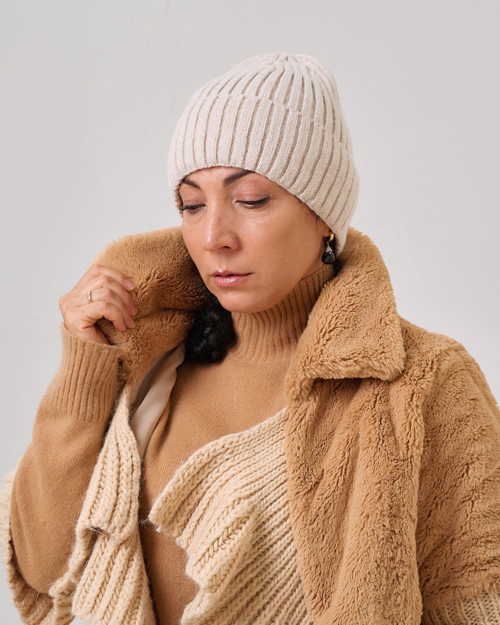 Жіноча шапка з мериносовою вовною. Тепла, м’яка й приємна на дотик, добре тримає форму та захищає від прохолоди. Завдяки універсальному дизайну легко поєднується як із повсякденними луками, так і з класичними образами.