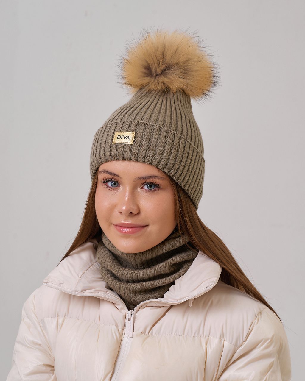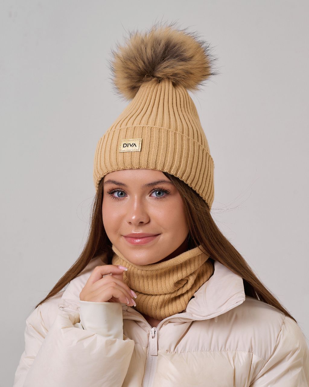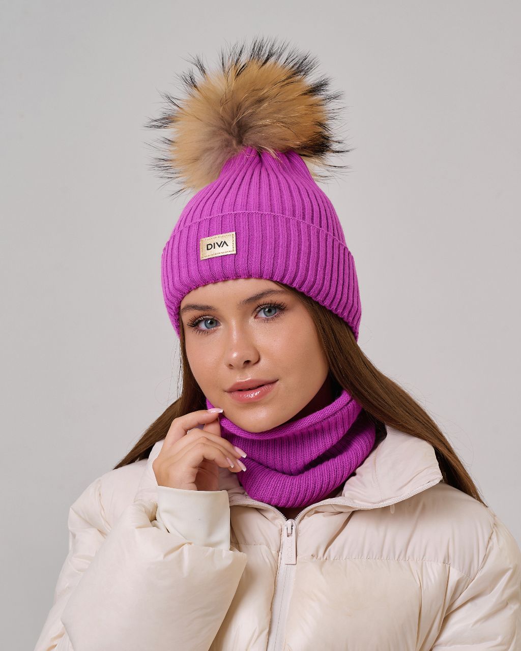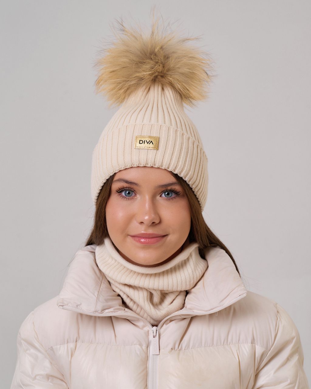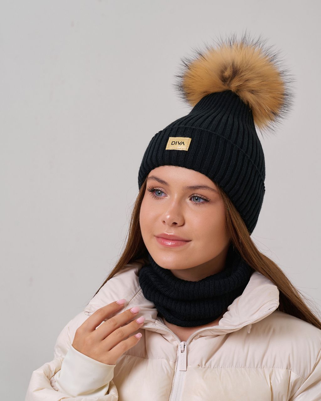 Жіночий комплект із вовною та мериносом (шапка зі снудом). Теплий і м’який, приємний до тіла та зручний у щоденному носінні. Завдяки мінімалістичному дизайну цей сет універсально поєднується як із повсякденними, так і з класичними образами.
